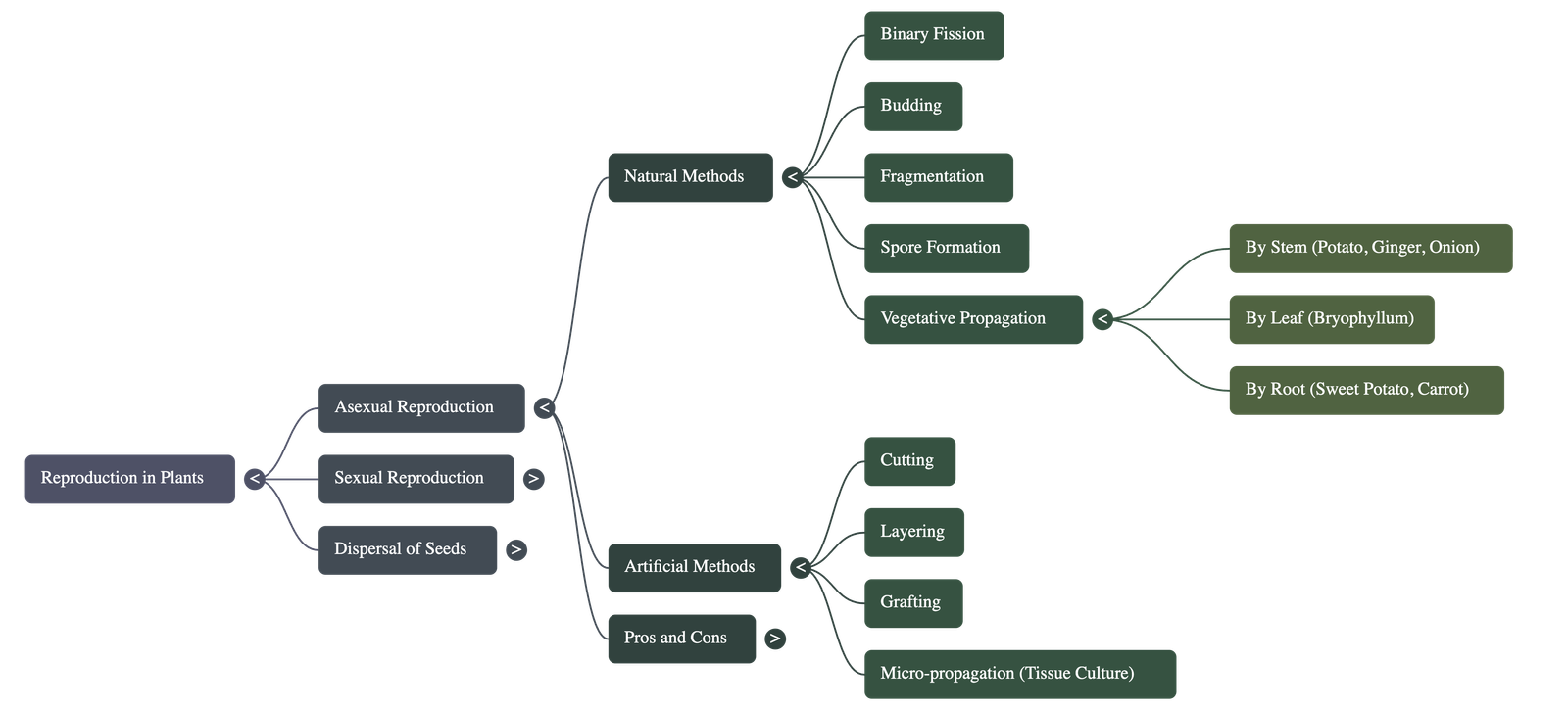 - Natural Vegetative Reproduction: New plants are produced from vegetative parts called propagules, such as stems (potato, ginger, onion), roots (sweet potato, carrot), and leaves (Bryophyllum),,,.