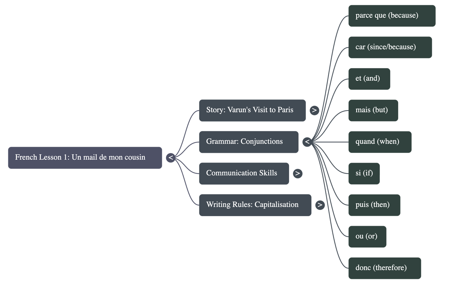 La leçon explique l'usage des conjonctions comme car, mais, donc, et parce que pour relier des phrases.