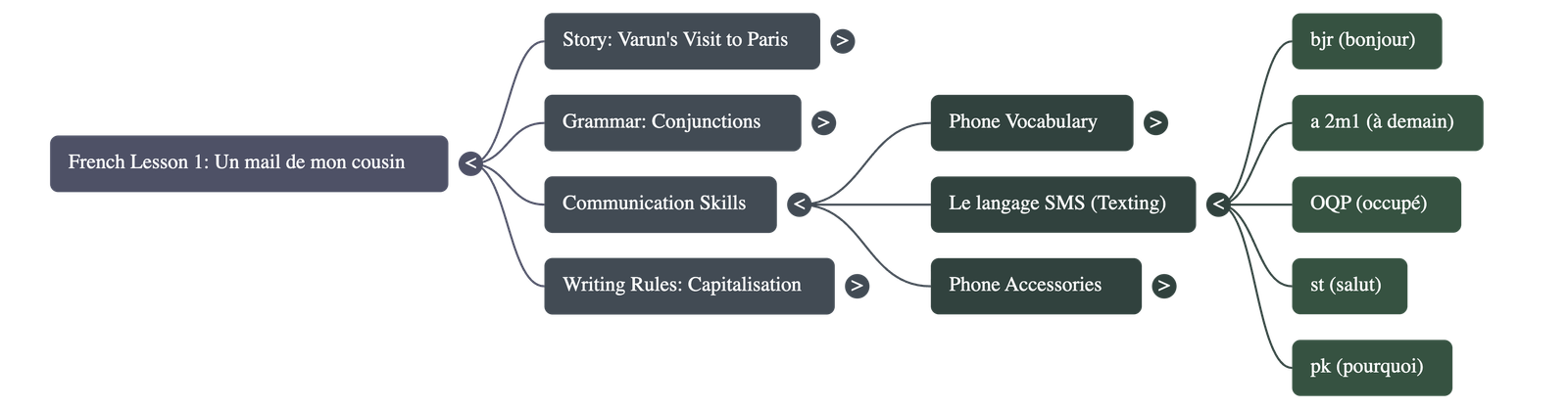 - A section is dedicated to French SMS language to simplify communication, such as "bjr" for hello.