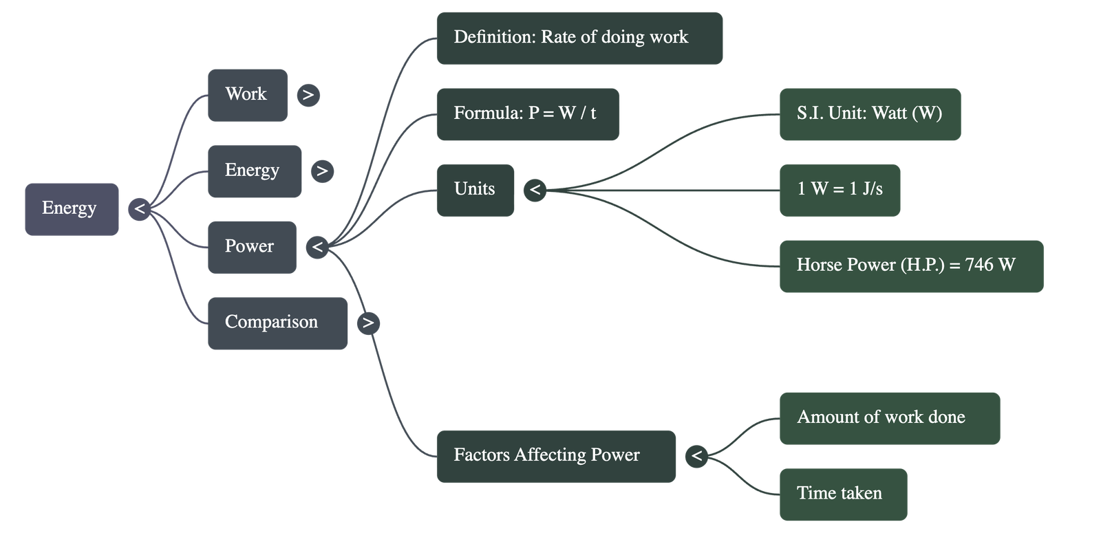 - Factors Affecting Power: It depends on the amount of work done and the time taken to do it. A faster rate of work results in higher power.