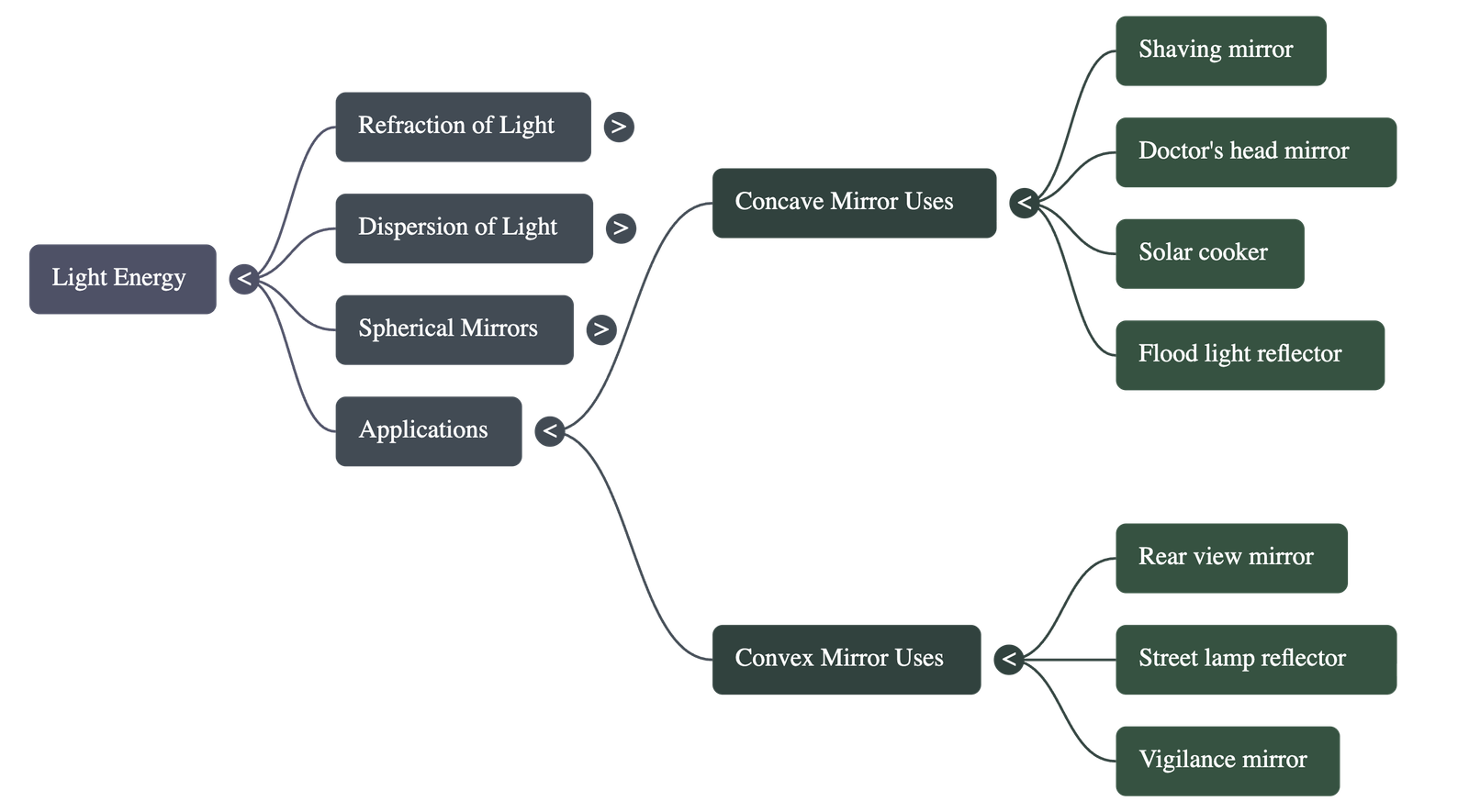 - Concave Mirrors: Used as shaving mirrors, reflectors in torches/headlights, doctor’s head mirrors, and in solar cookers to converge sun rays.