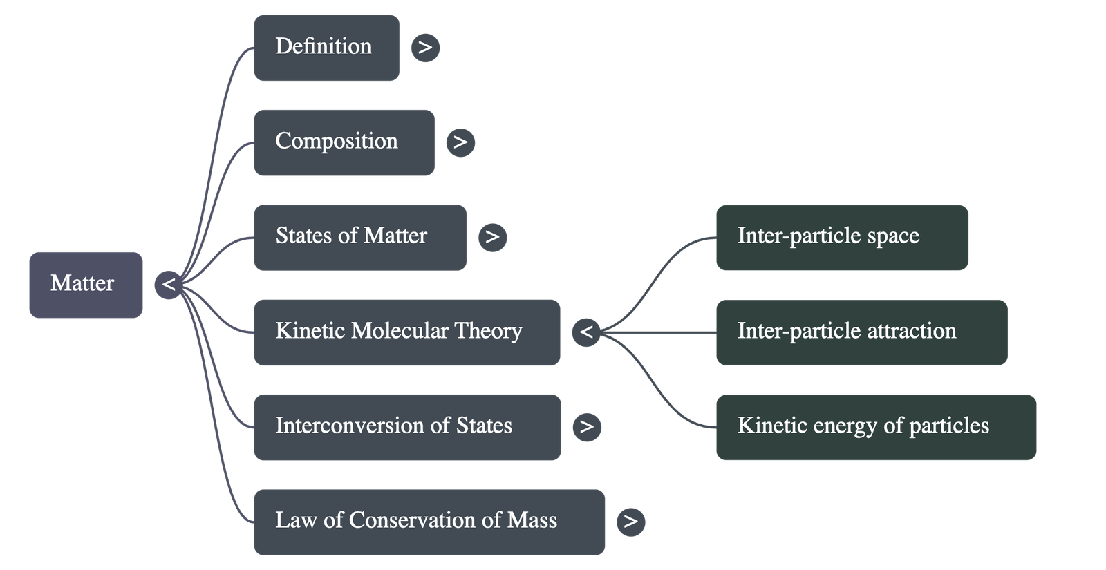- Postulates: Matter is made of particles in continuous motion, possessing kinetic energy. These particles have spaces between them (inter-particle space) and attract each other (inter-particle attraction).