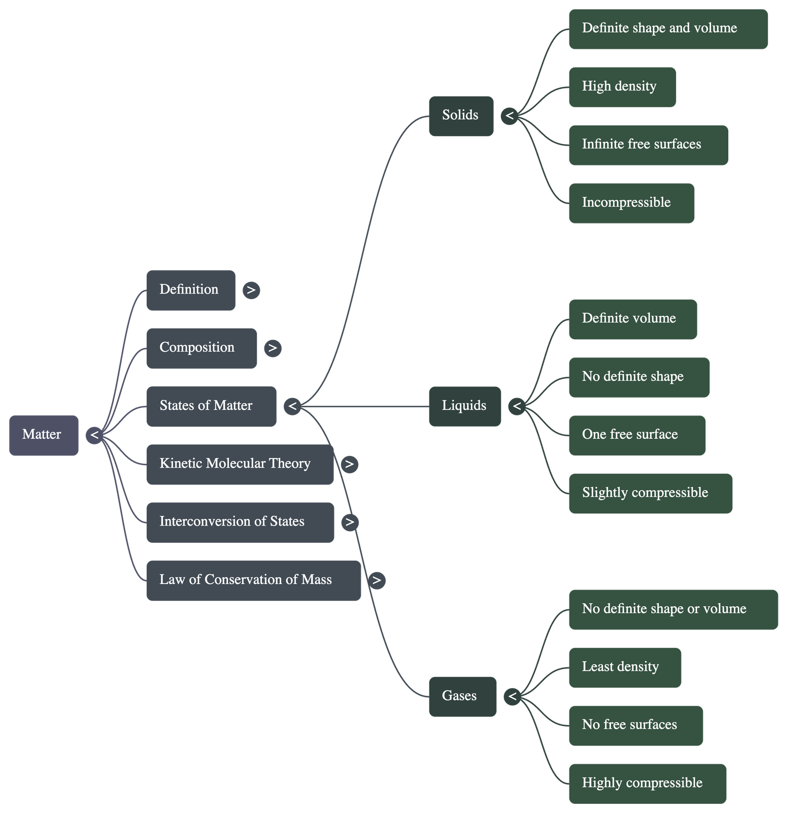- Solids: Have a definite volume and shape, high density, and infinite free surfaces. They cannot be compressed or diffused.