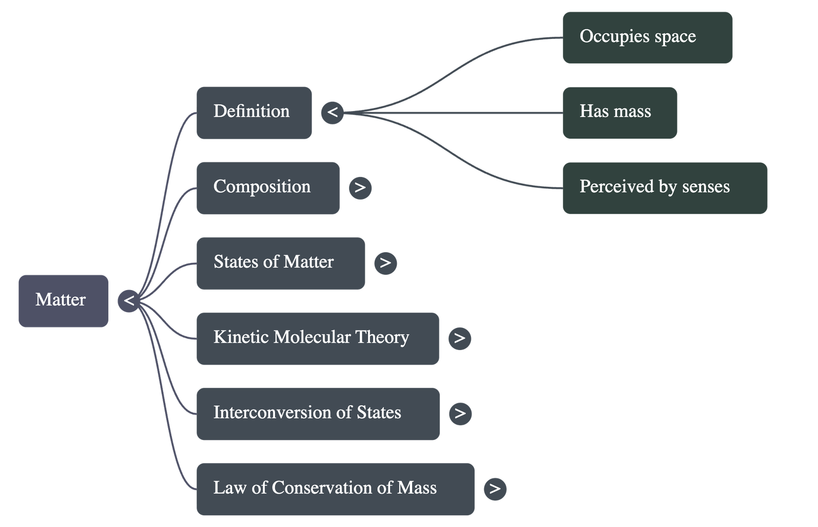- Matter is anything that occupies space, has mass, and can be perceived by the senses.
