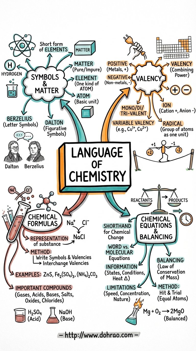 - Method of Writing: To write a formula, the symbols of the elements/radicals are written with their valencies. These valencies are then interchanged (criss-crossed) to determine the subscript numbers for each symbol.