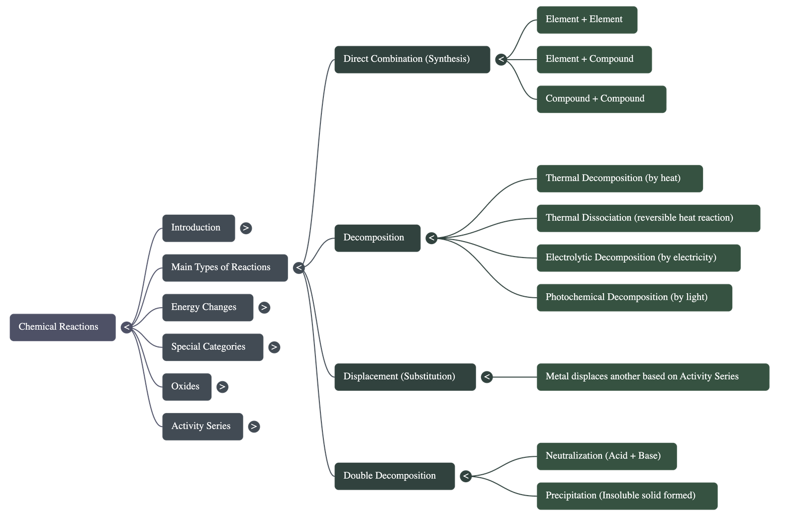 - Direct Combination (Synthesis): A reaction where two or more elements or compounds combine to form a single new compound.