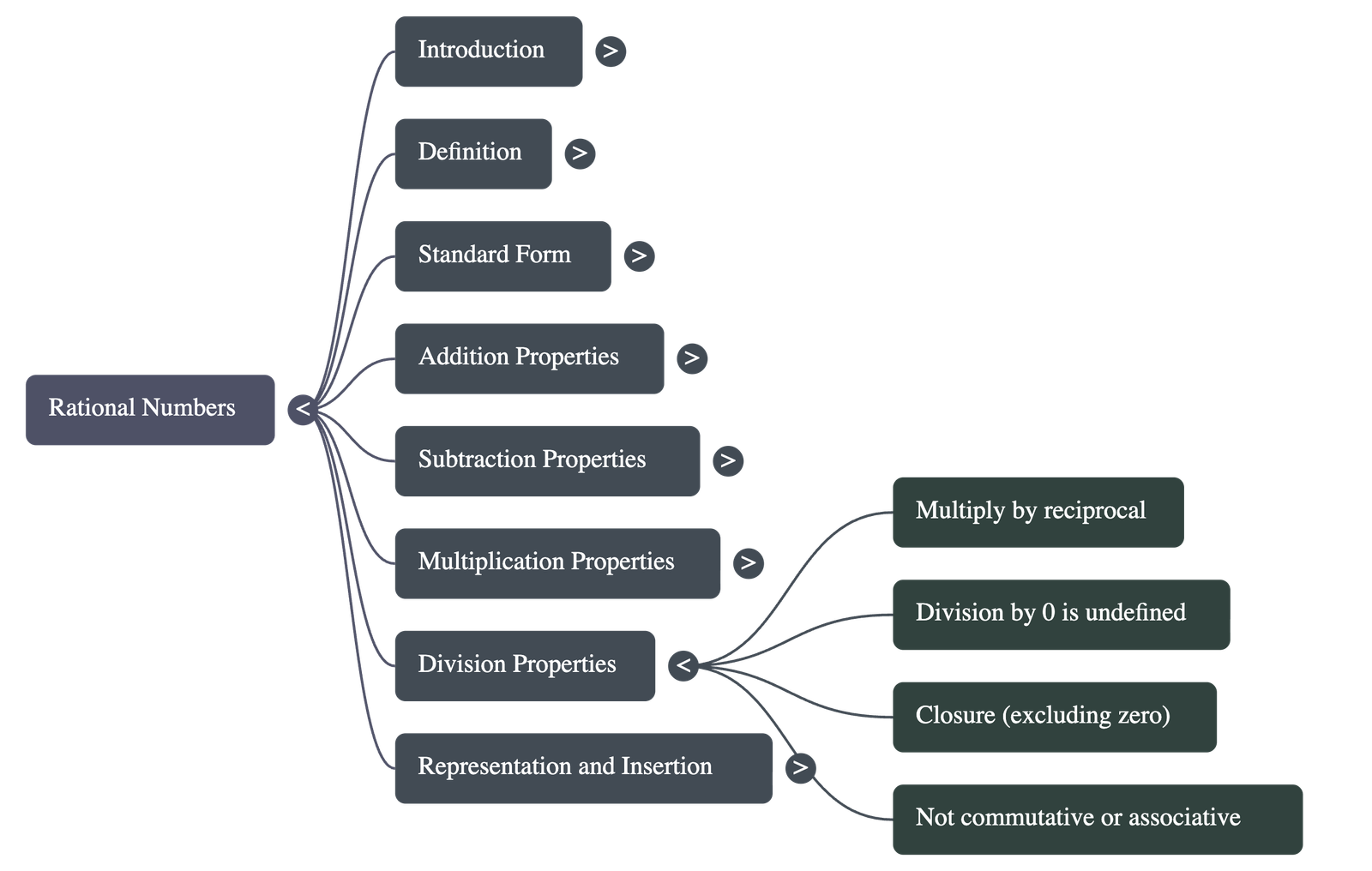 - Closure: Division is closed for all rational numbers except when dividing by zero.