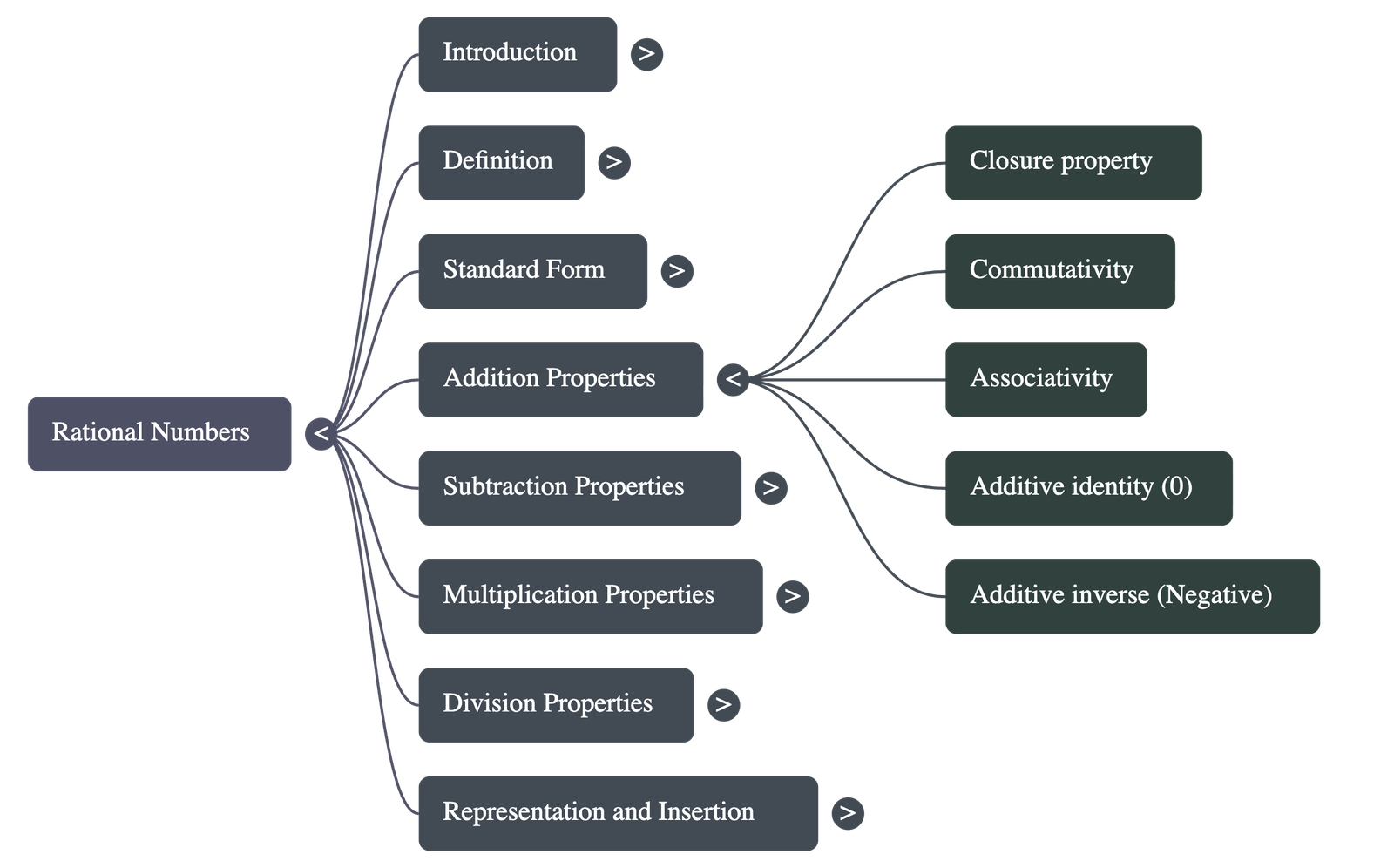 - Additive Identity: Zero (0) is the identity element; adding it to any rational number leaves the number unchanged.
