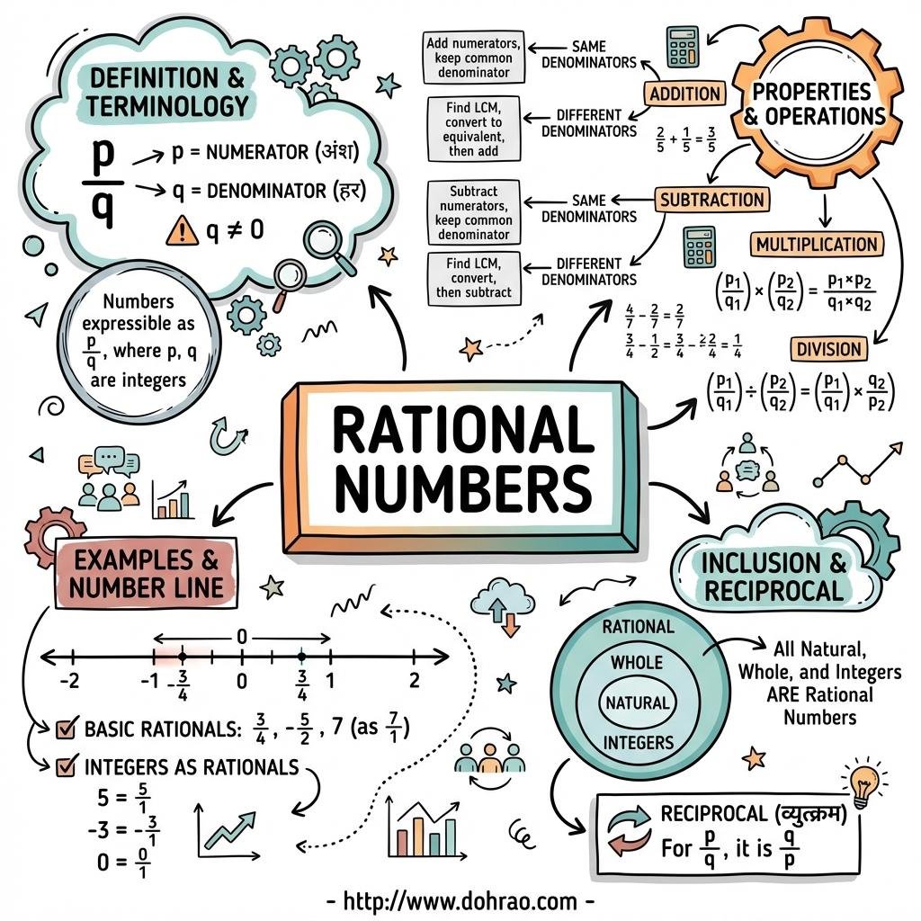 - Multiplicative Inverse (Reciprocal): For a non-zero rational number