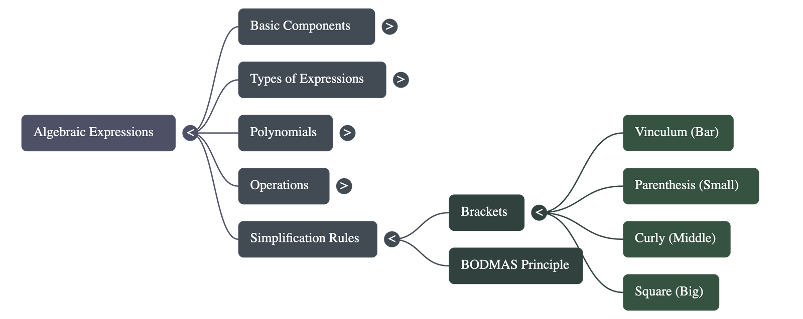 - Brackets: Operations must follow a specific order of removal: 1. Vinculum (bar), 2. Parenthesis (round), 3. Curly brackets, 4. Square brackets.