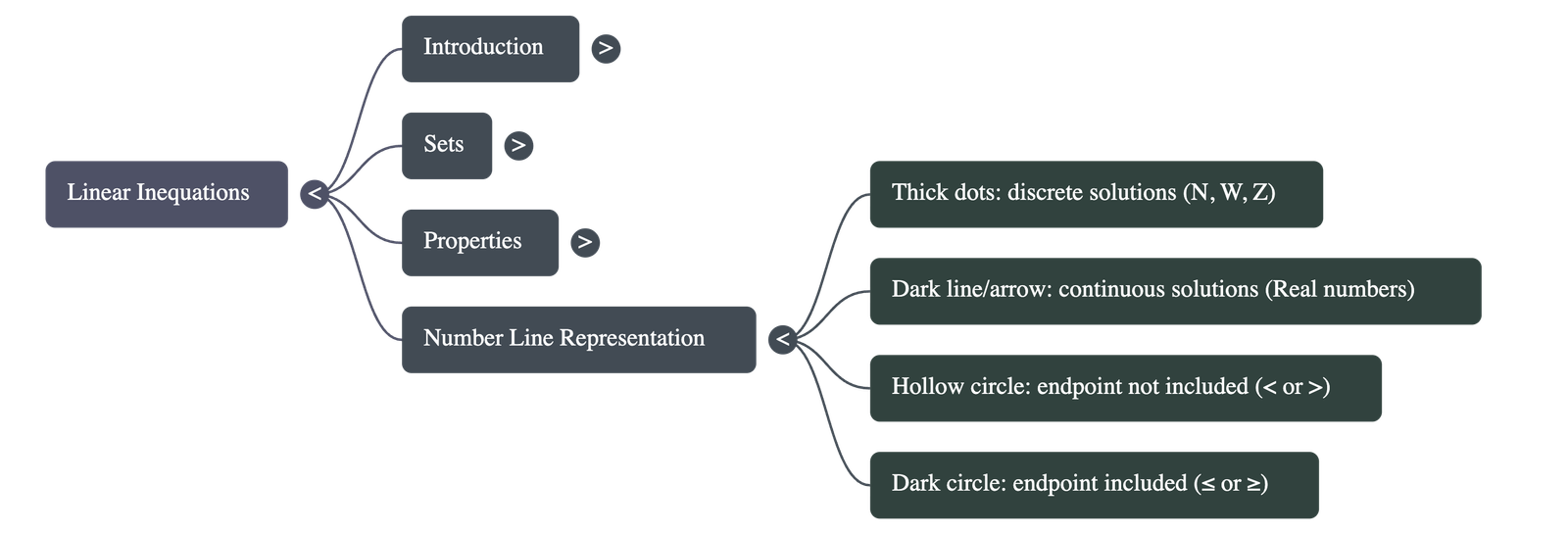 - Discrete Solutions: For sets like Natural numbers or Integers, the solution is represented by thick dots on the specific numbers that satisfy the inequation.