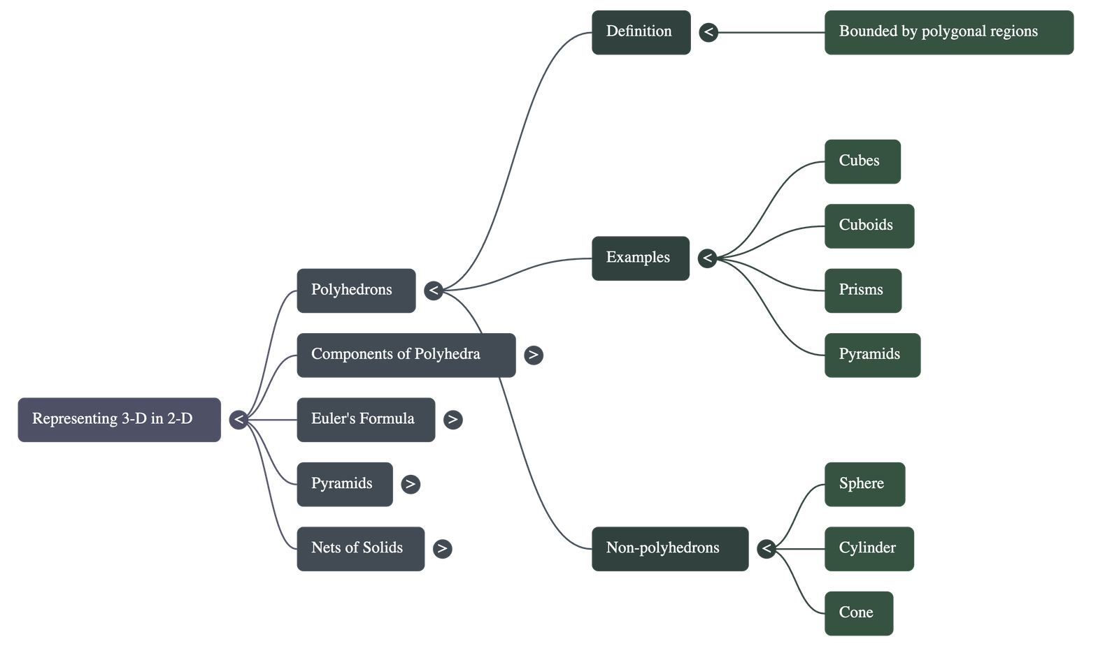 - Non-Polyhedrons: Spheres, cylinders, and cones (these include curved surfaces).