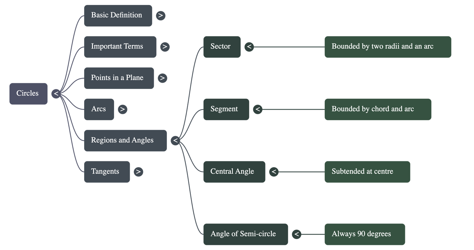 - Exterior: The region outside the circle. A point is in the exterior if its distance from the centre is greater than the radius.