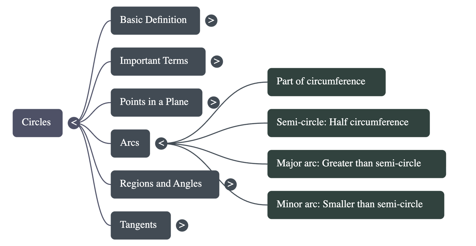 - Major and Minor Arcs: When a circumference is divided into unequal parts, the larger part is the major arc and the smaller is the minor arc.