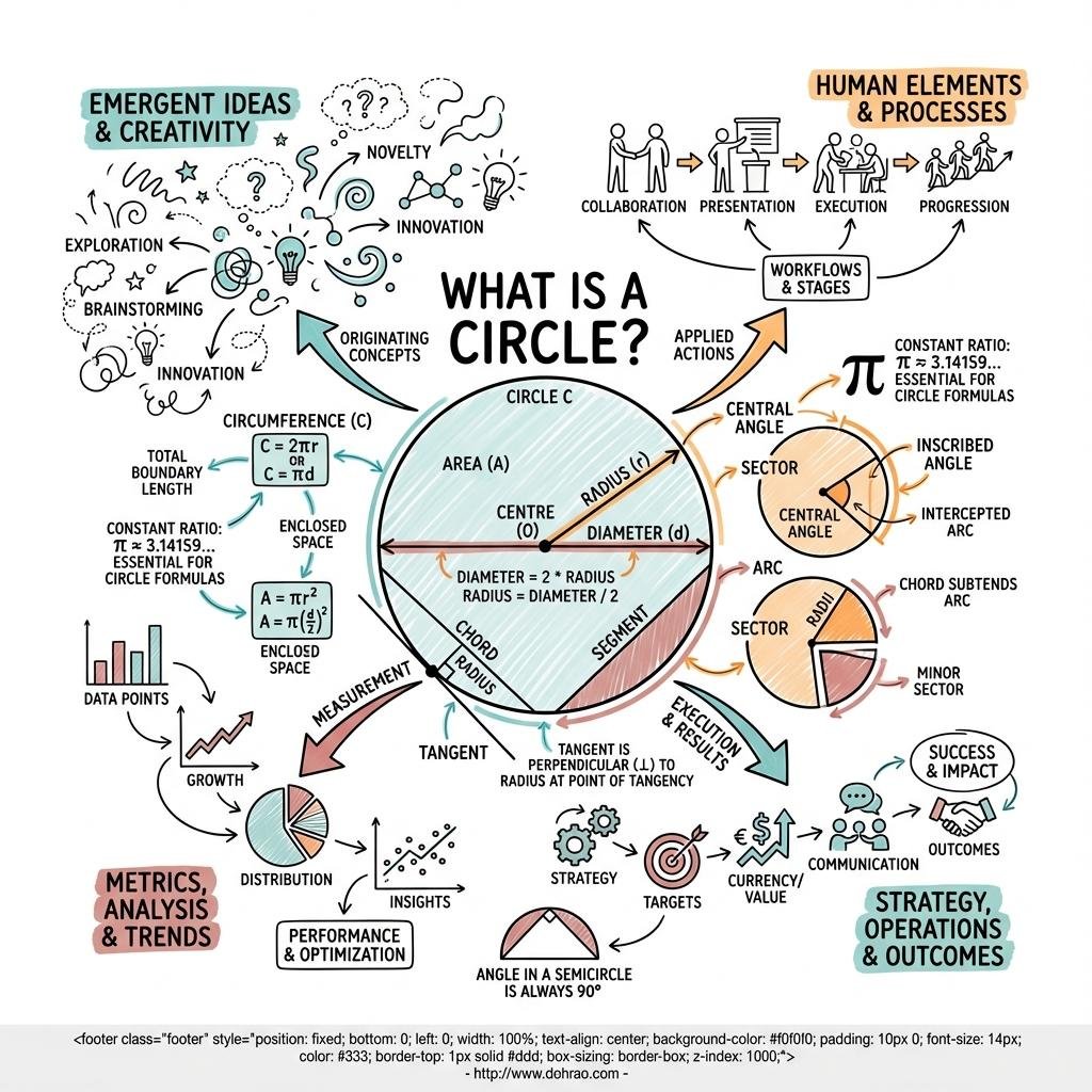 - Circle: A plane figure formed by a point moving such that it remains at a constant distance from a fixed point.