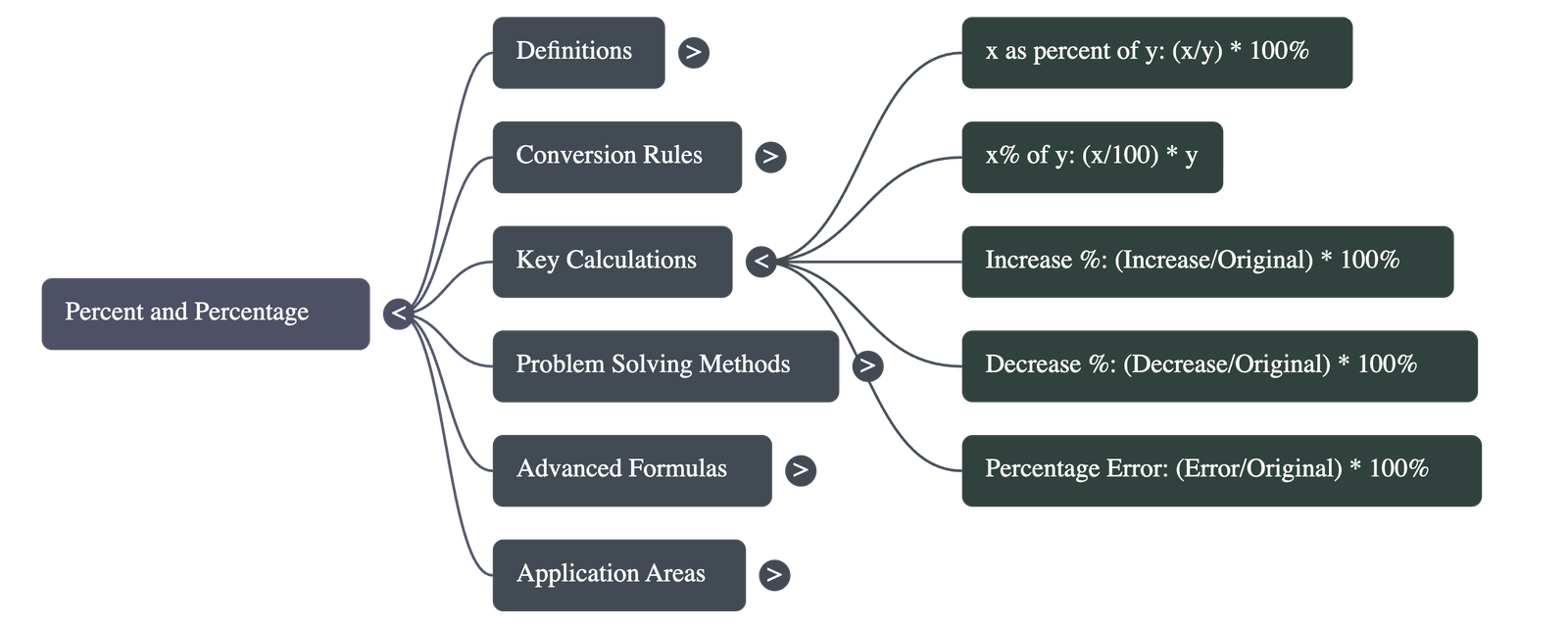 - Finding a Percentage of a Total: To find what percent x is of y, use the formula: