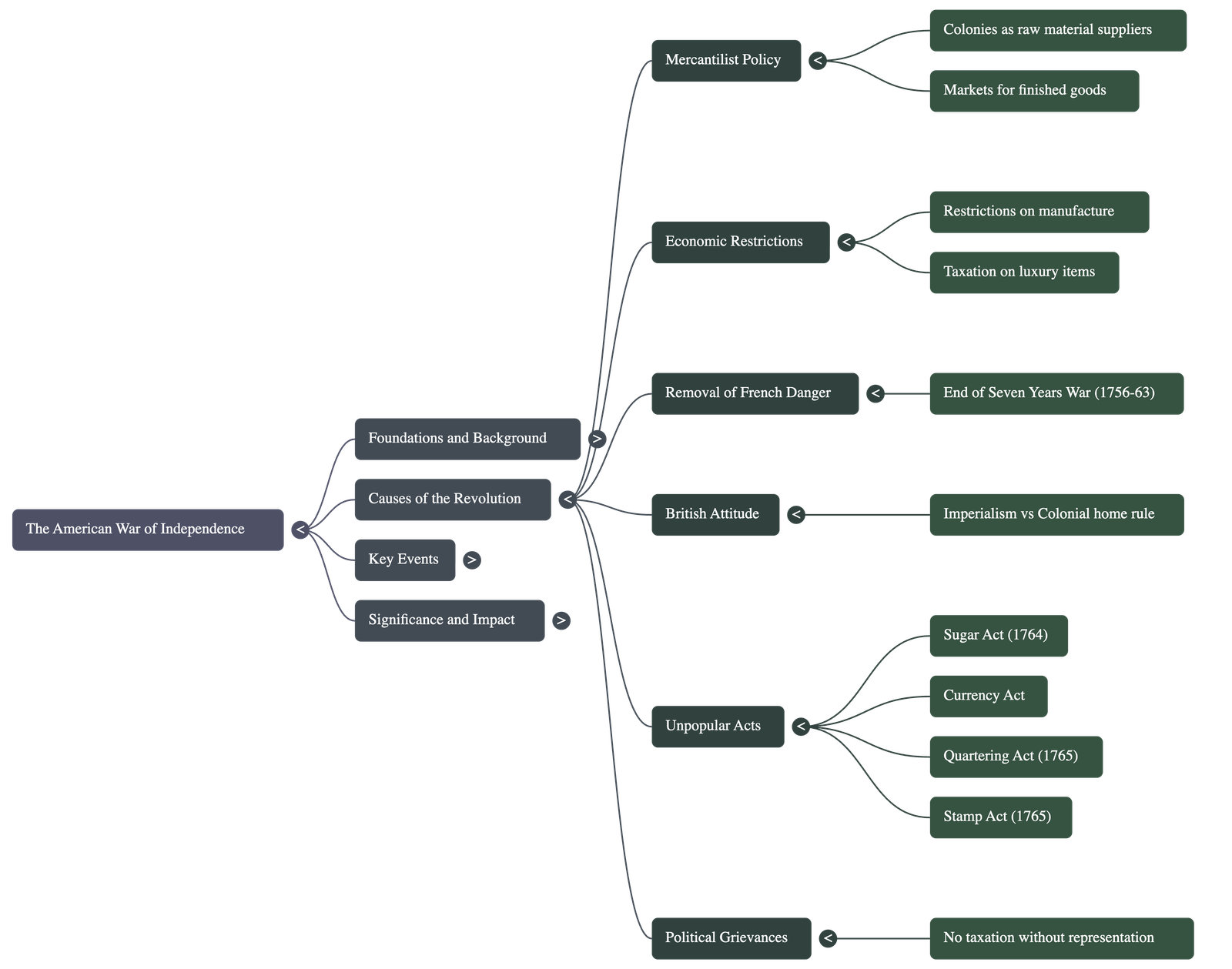 • Removal of the French Danger: After Britain defeated France in the Seven Years War (1756–63), the colonists no longer feared French attacks. This made them feel less dependent on British military protection and more willing to resist British rule.