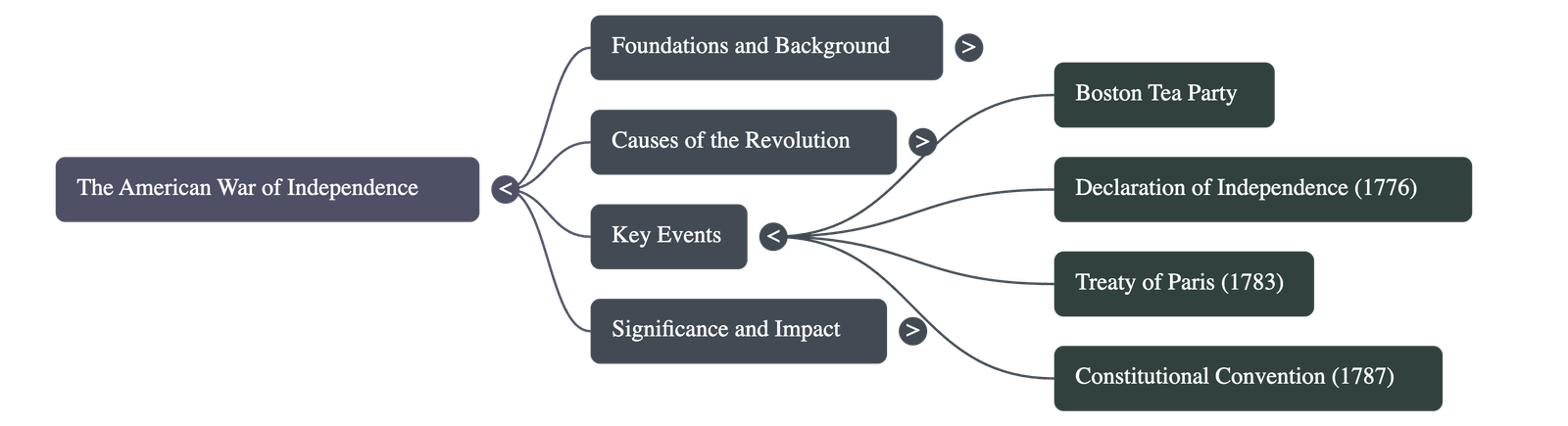 • The Boston Tea Party: This event was the immediate trigger for the war. Protesting the Tea Act, colonists dumped 340 boxes of tea into the sea at Boston port.