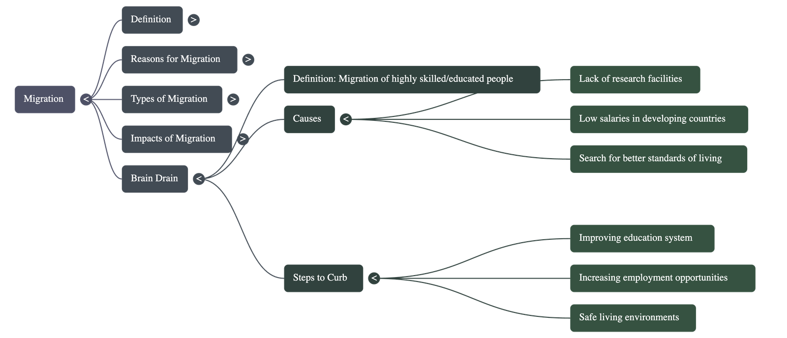 - Brain Drain (human capital flight) refers to the large-scale migration of highly skilled and educated professionals (like doctors and engineers) from developing countries to developed nations.