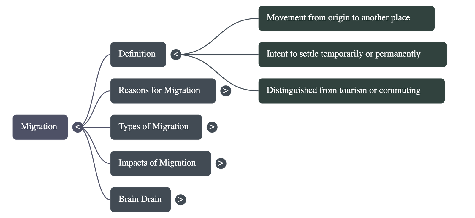 - It is distinct from tourism, commuting for work, or herding, as these activities do not involve the intention of settling in a new place.