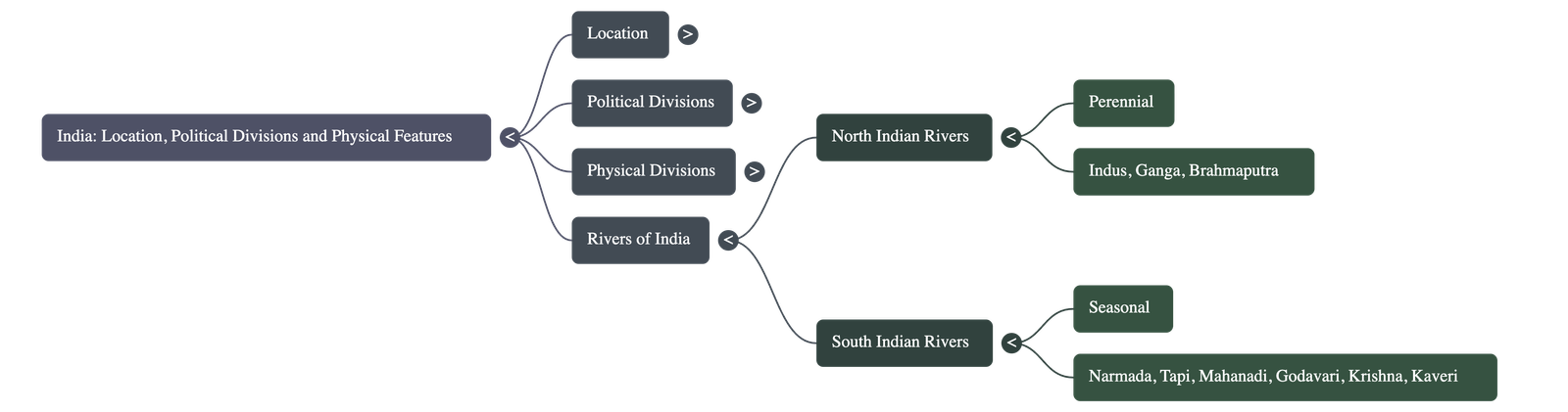 - North Indian Rivers: These rivers, such as the Indus, Ganga, and Brahmaputra, are perennial, meaning they have water throughout the year because they are fed by melting snow and monsoon rain.