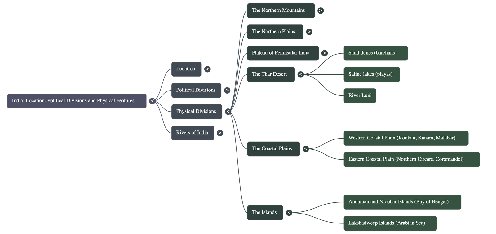 - Boundaries: It is bordered by the Himalayan mountain ranges to the north, the Arabian Sea to the west, the Bay of Bengal to the east, and the Indian Ocean to the south.