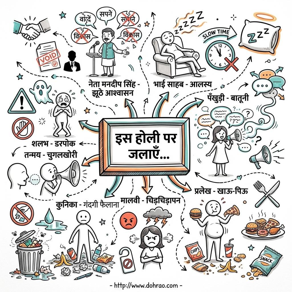 - तन्मय: दूसरों को नीचा दिखाने वाली 'चुगलखोरी' की आदत को अग्नि के हवाले किया।