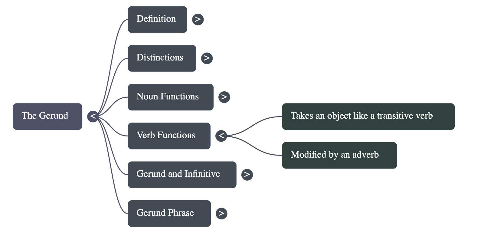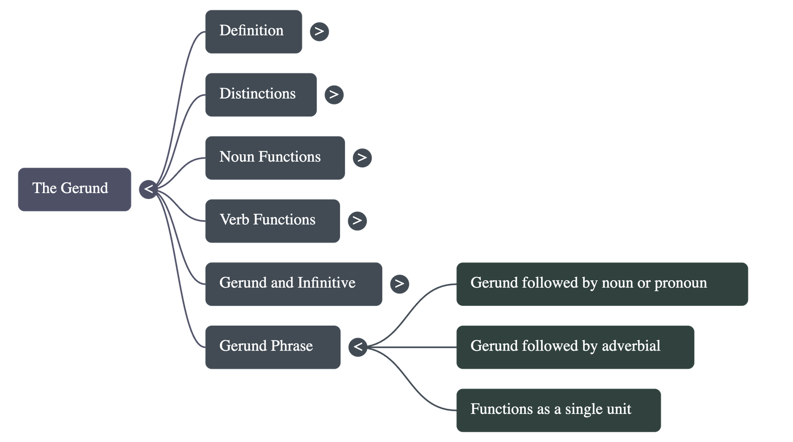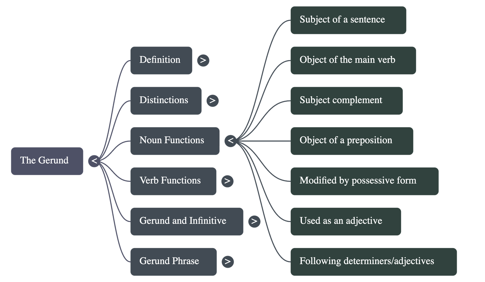 - The Gerund Phrase: A gerund phrase consists of a gerund plus its objects, complements, or adverbials. The entire phrase functions as a single noun unit and can serve as a subject, object, or complement within a sentence (e.g., "Travelling through the countryside made me nostalgic").