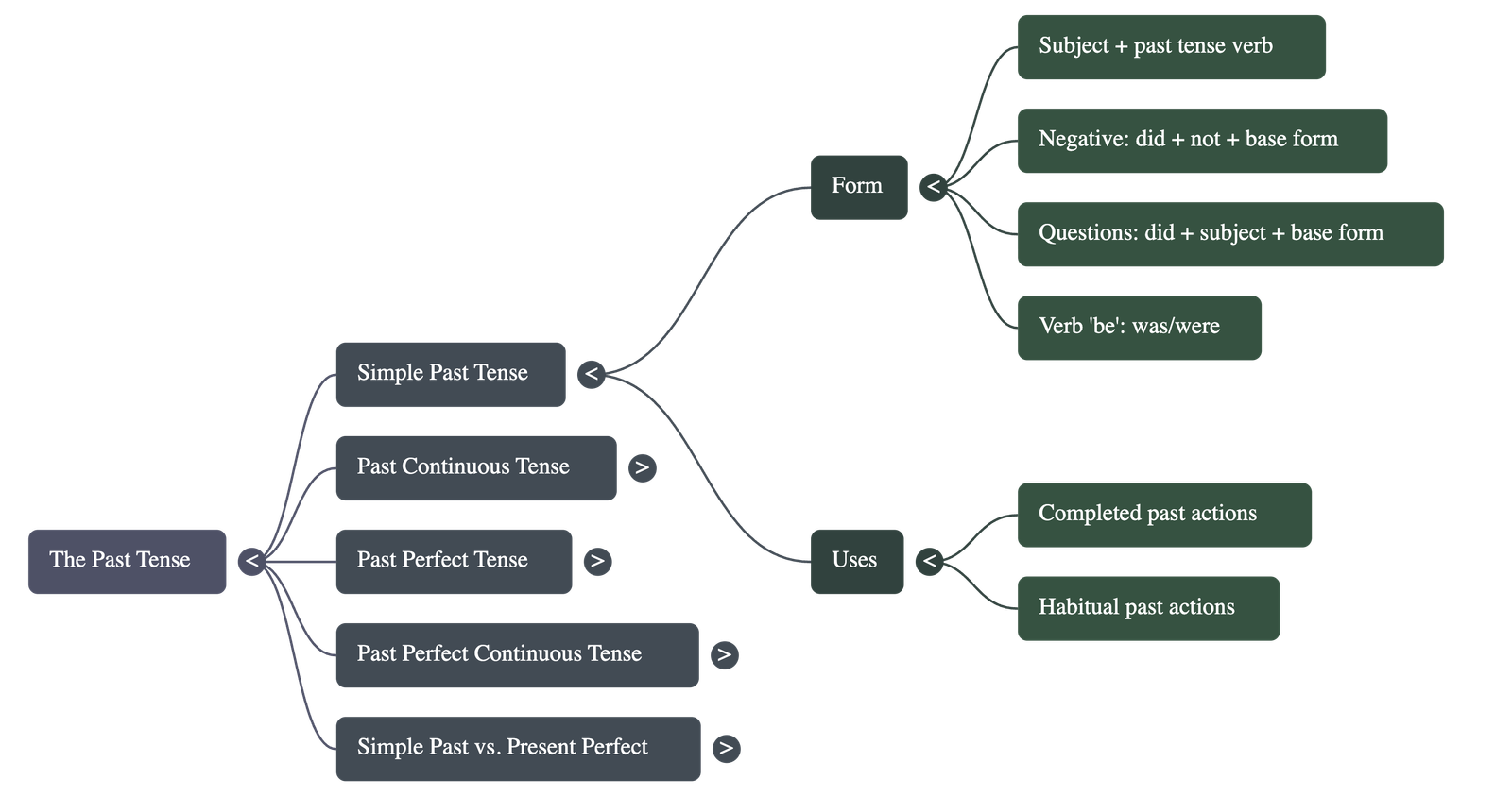 - Positive: Subject + past tense form of verb (e.g., Nayan left the party).