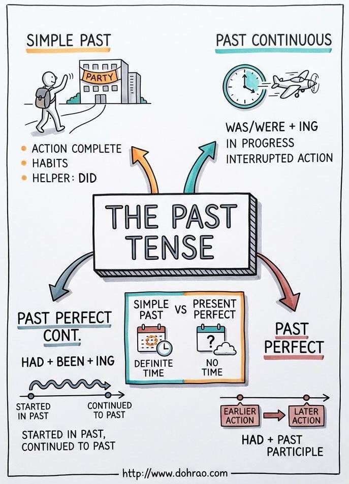 - Negative: Subject + did + not + base form of verb (e.g., They did not go).