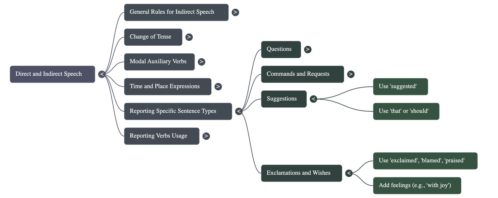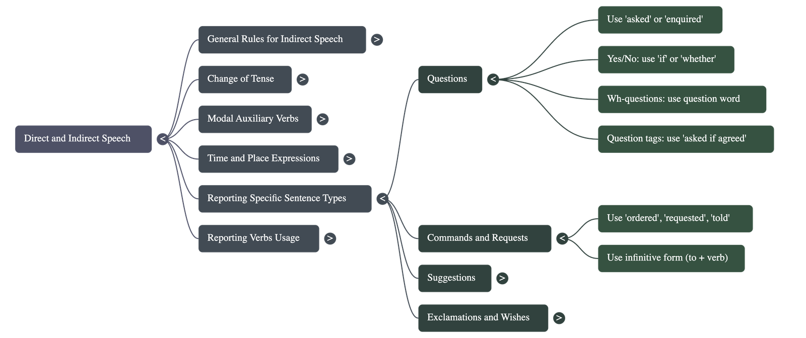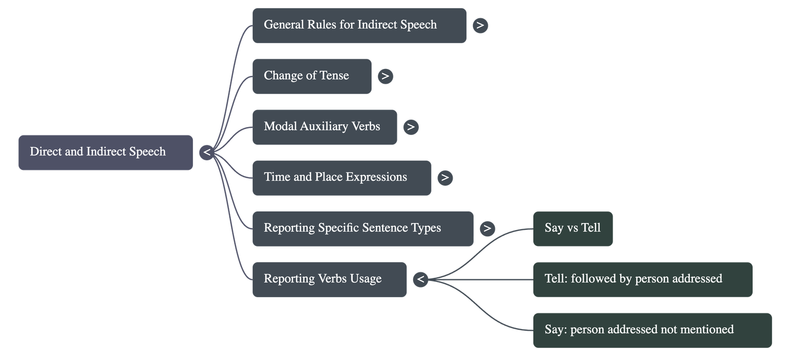 - Indirect (Reported) Speech: Reporting the substance of what was said without repeating the speaker's exact words.