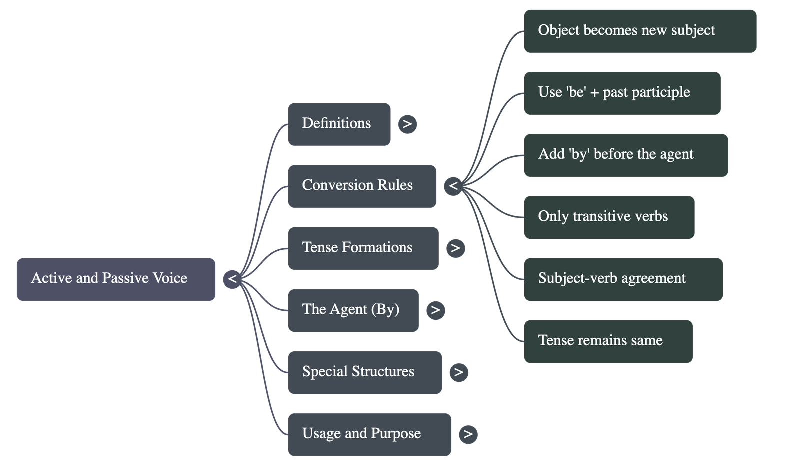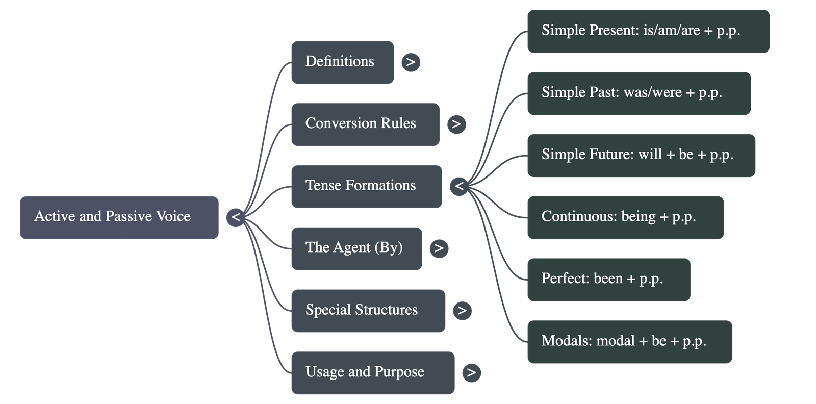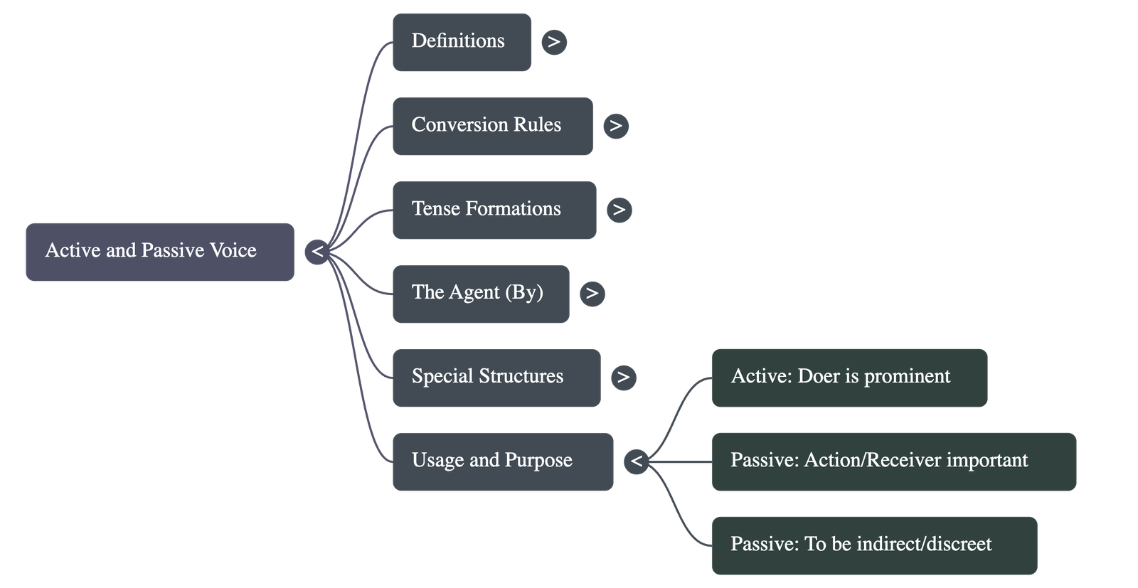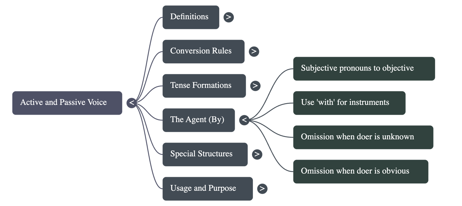 - The Agent: When the doer is mentioned in a passive sentence, they are called the "agent" and are introduced using the preposition "by".