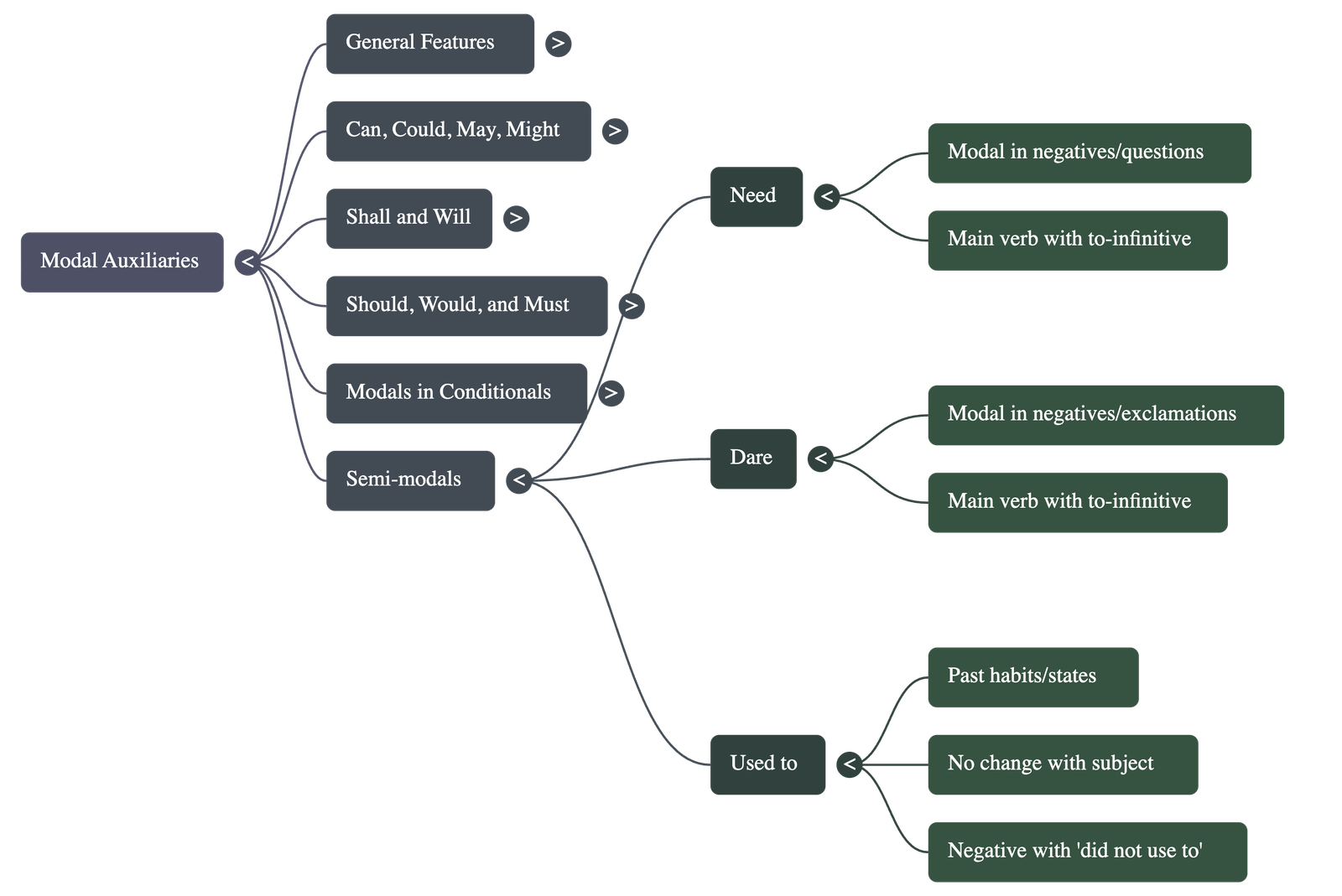 - Semi-modals (Need, Dare, Used to): These are verbs that can function as both modal verbs and main verbs.
