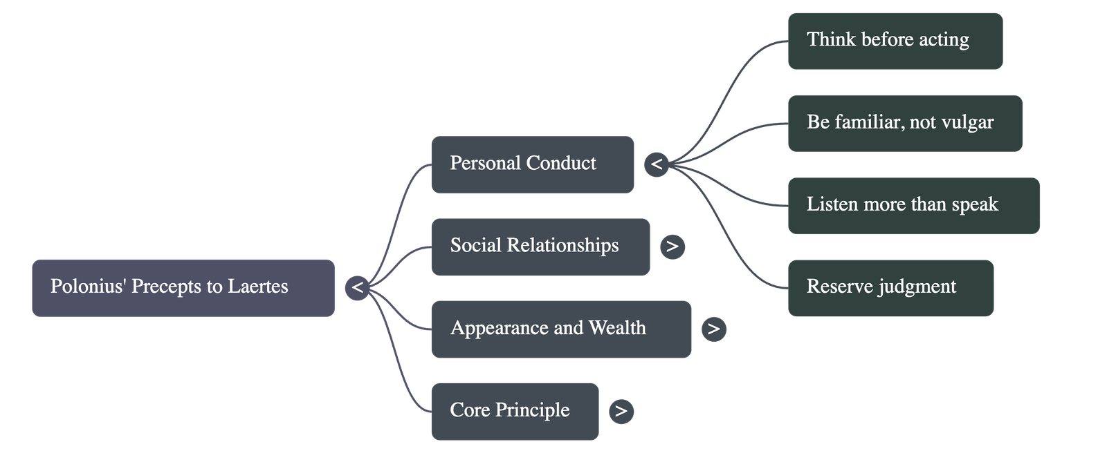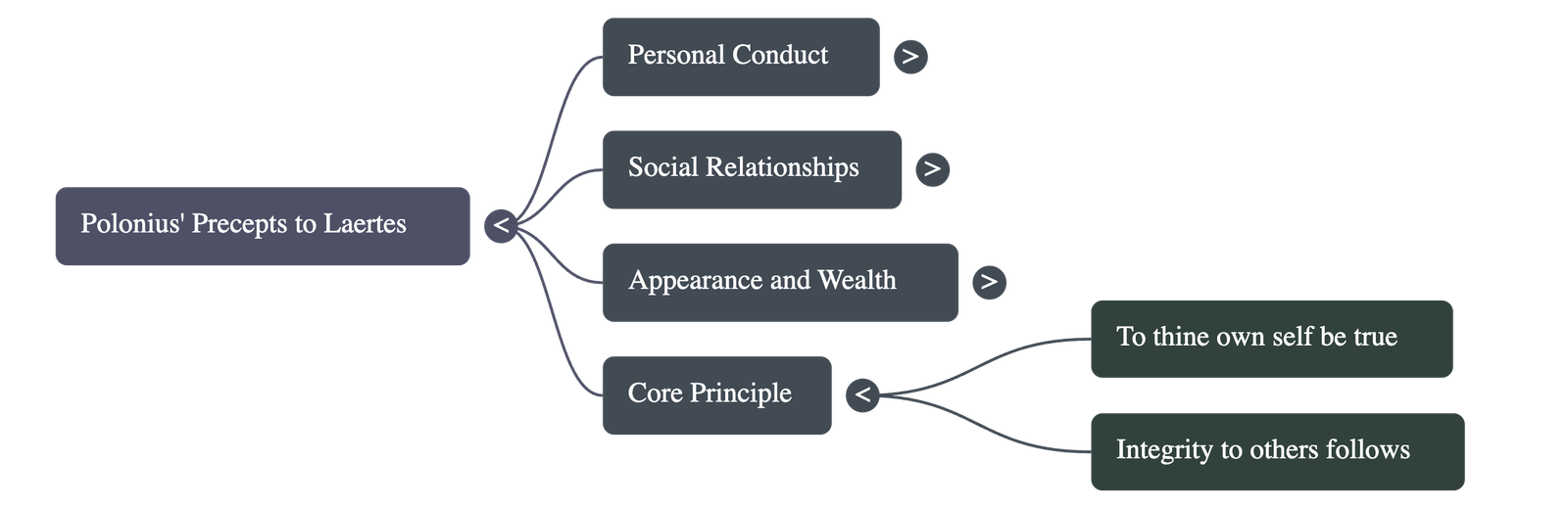 Personal Integrity: The final and most significant piece of advice is for Laertes to be true to himself. Polonius argues that if a person maintains their own integrity, it follows "as the night the day" that they cannot be false to anyone else.