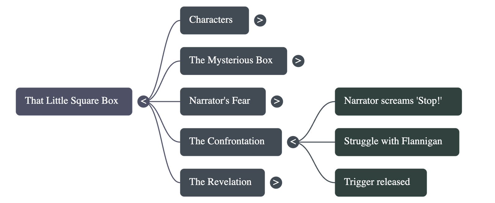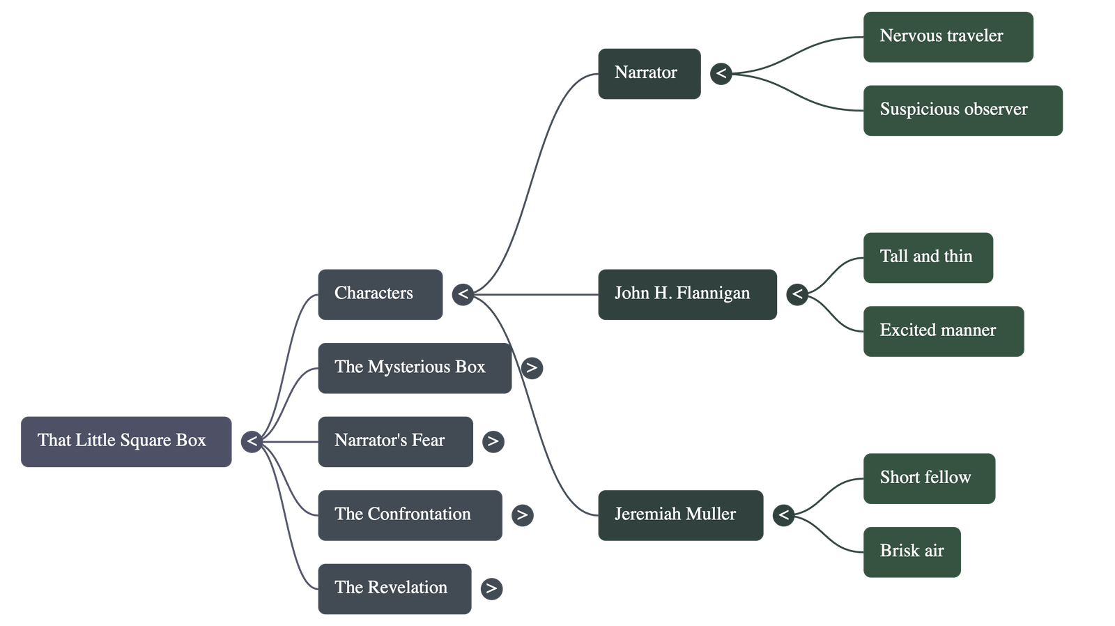 - The narrator overhears Flannigan and Muller discussing a secretive plan involving a "little square box."