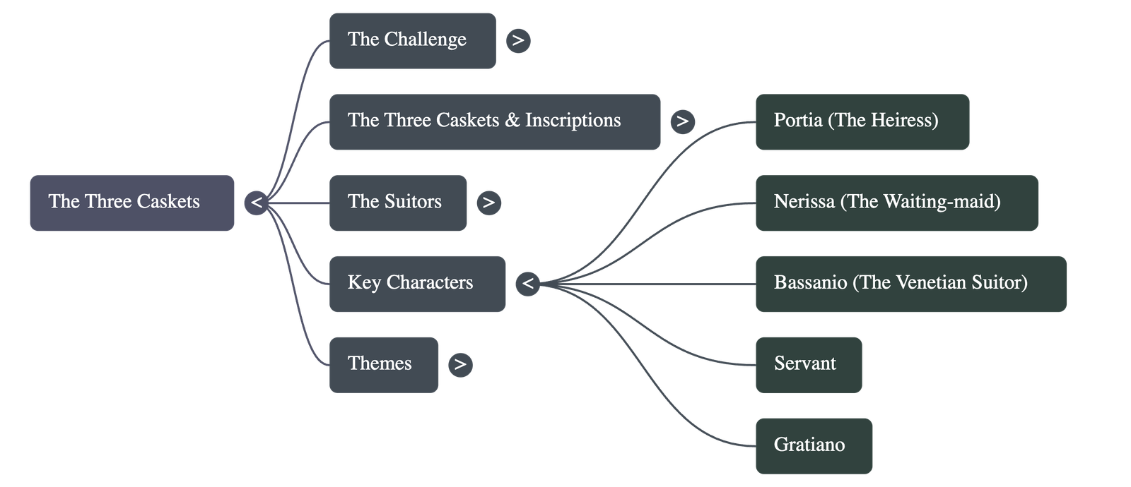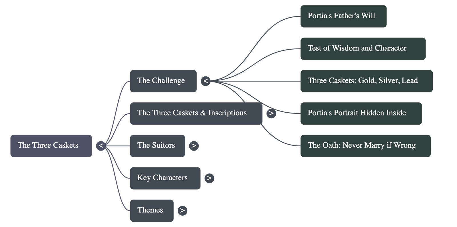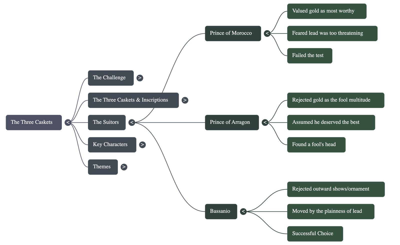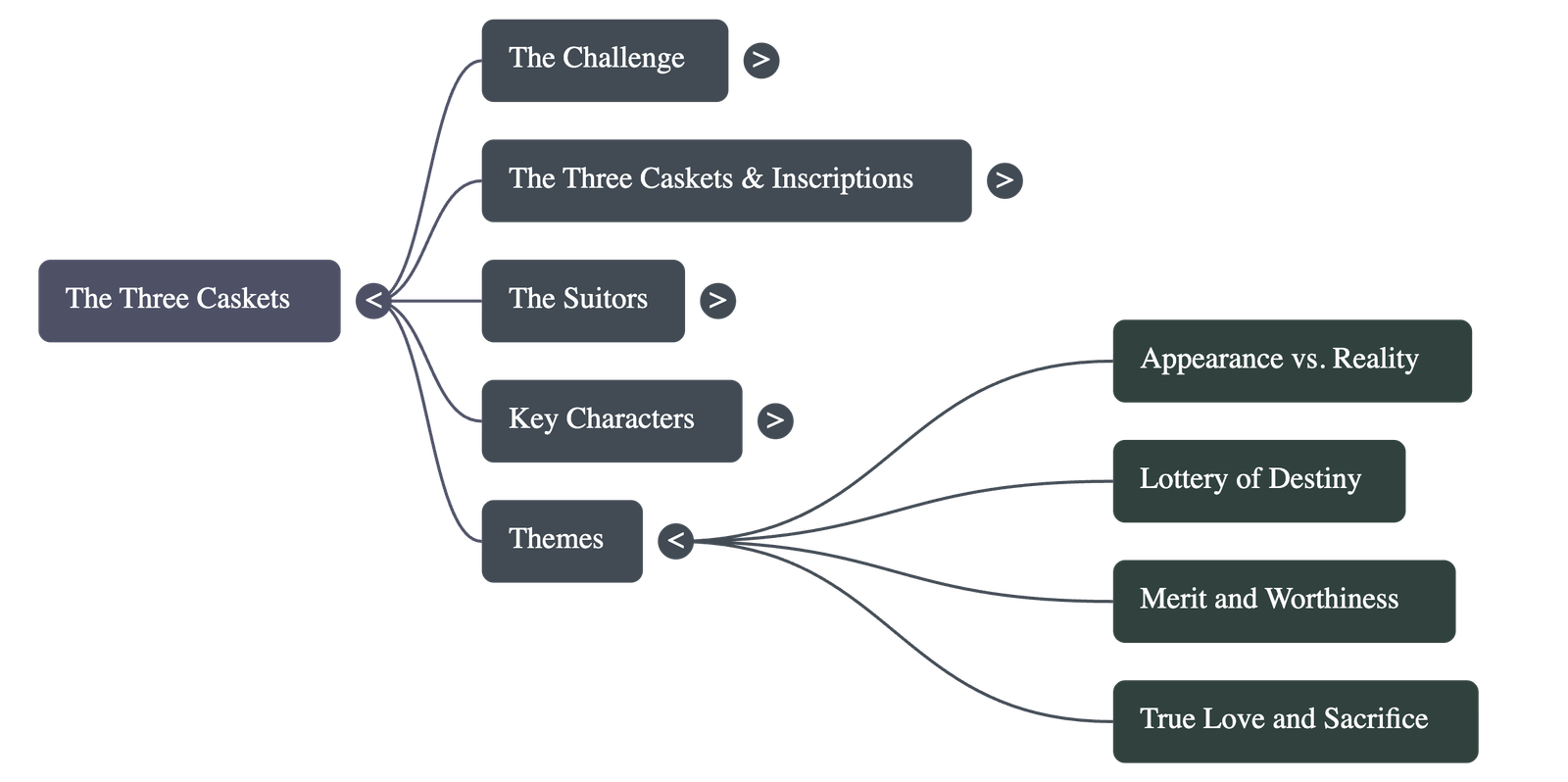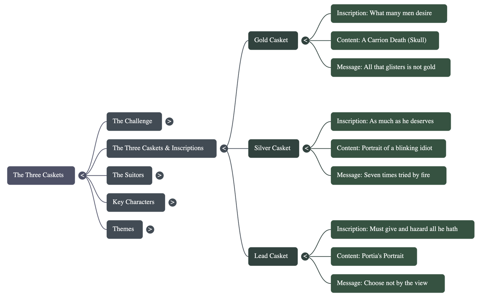 - There are three caskets: Gold, Silver, and Lead. Only one contains Portia's portrait.