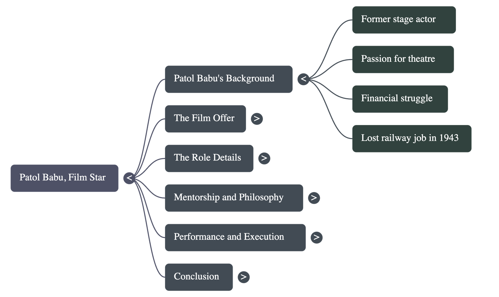 - A Forgotten Passion: Patol Babu was once a dedicated stage actor in amateur theatricals with a "real passion for the stage," but he had not acted in years after losing his steady job in 1943 due to war-related cutbacks.