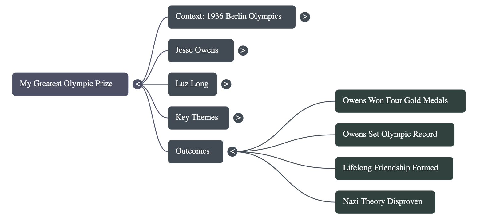 - The "Greatest Prize": Owens won the gold medal and set a new Olympic record. Long was the first to congratulate him heartily in full view of Hitler. Owens realized that his "24-carat friendship" with Long was worth more than all his medals, embodying the Olympic spirit that "the essential thing in life is not conquering but fighting well".