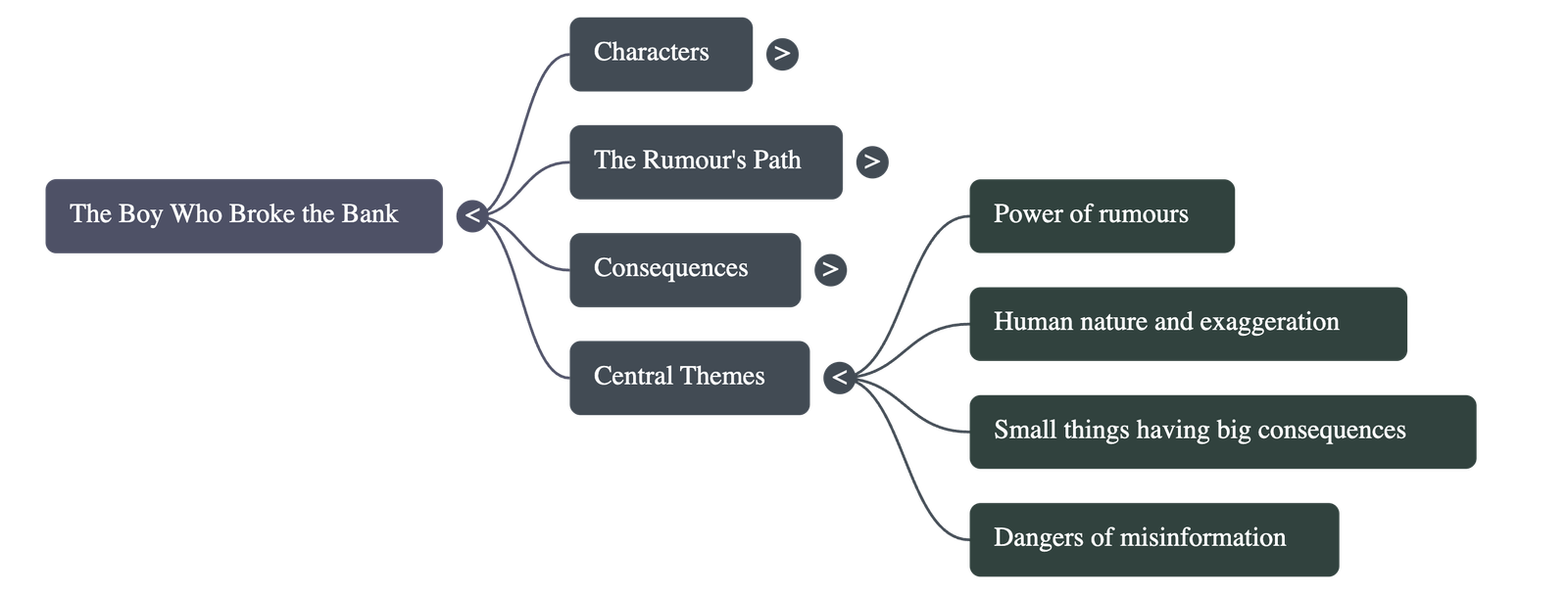- Rapid Escalation and Distortion: The information quickly transforms as it is passed from person to person. Mrs Prakash tells Mrs Bhushan that the bank cannot pay its employees; Mrs Bhushan then tells Mr Jugal Kishore that the bank is going bankrupt and has stopped paying everyone for three months.