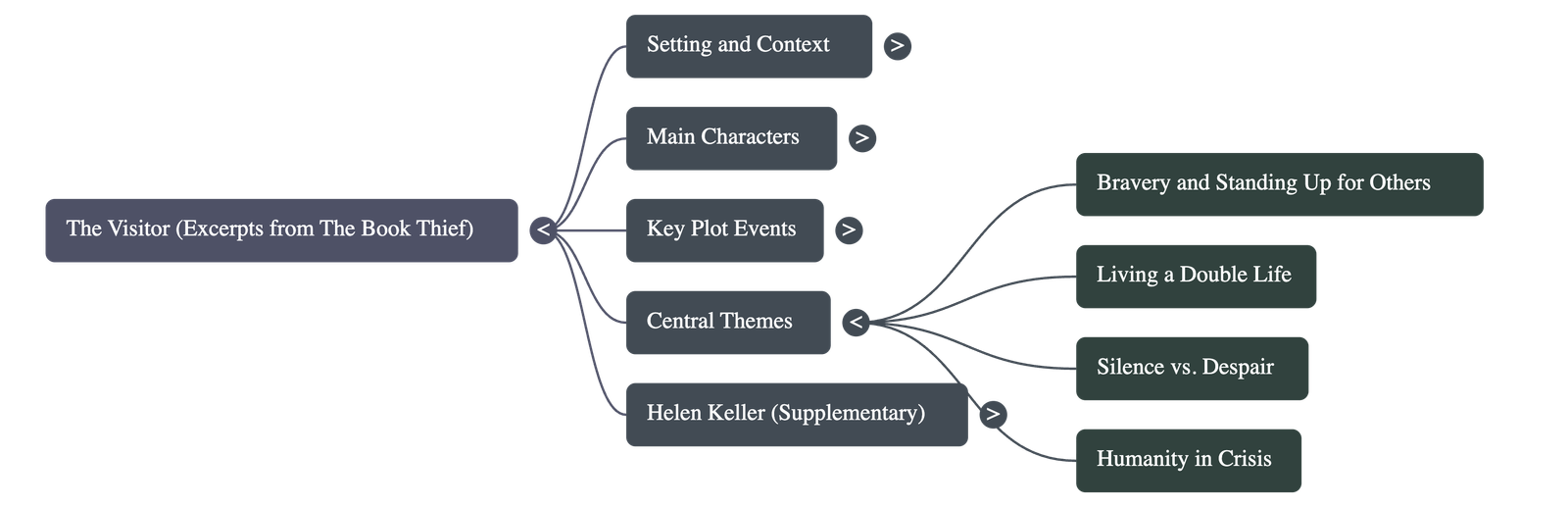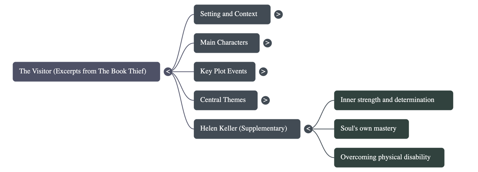 Key Theme: Both texts explore the concept of courage. In "The Visitor," it is the courage to protect others in the face of political tyranny. In "Helen Keller," it is the courage to find inner strength despite physical challenges.