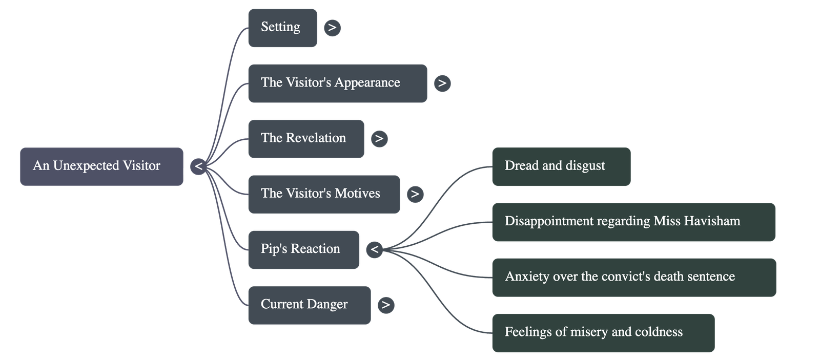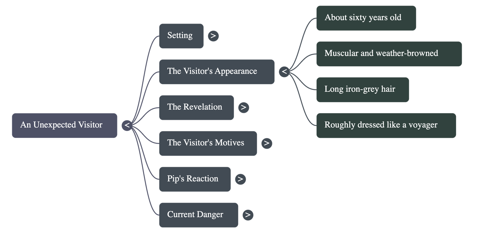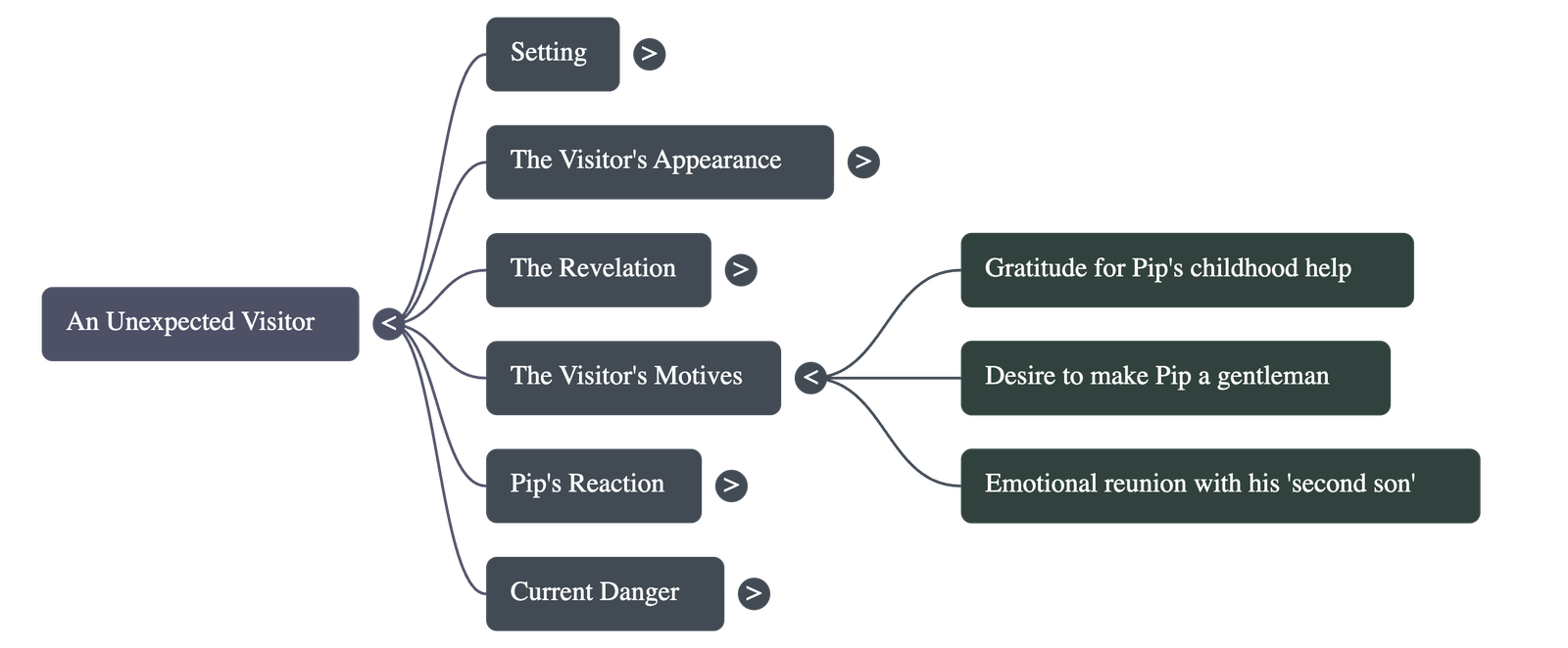 - • The Recognition: As the man sits by the fire, Pip experiences a flash of memory and realizes the visitor is the convict he aided in the churchyard marshes many years ago.