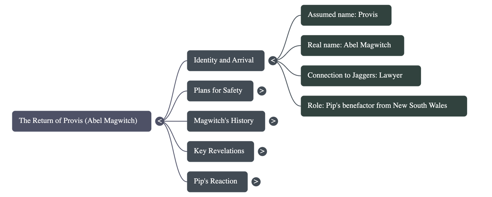- The New Identity: The convict reveals his real name is Abel Magwitch, but he adopts the pseudonym "Provis" to maintain his safety while in London. He notes that Mr. Jaggers has been his lawyer since his trial years ago.