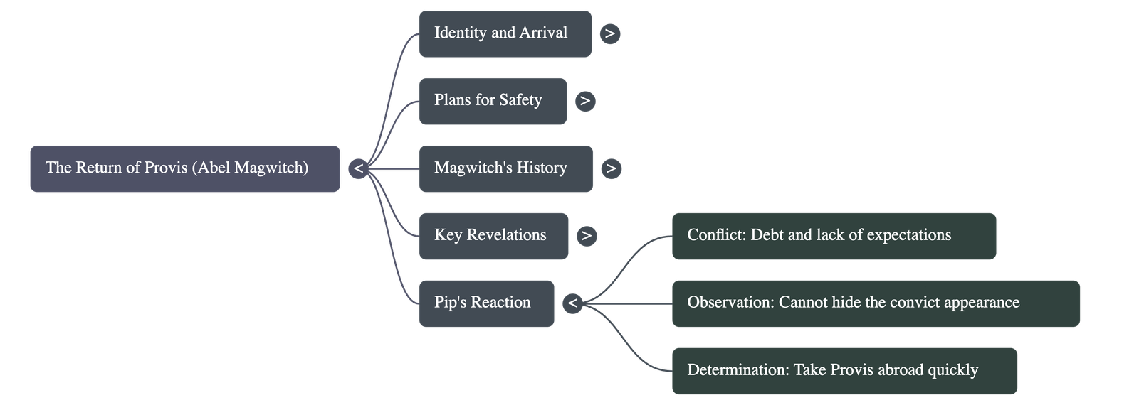 - Resolution to Flee: Horrified by the realization that Compeyson is a dangerous enemy who would likely inform on Provis to save himself, Pip decides they must take Provis abroad as soon as possible.