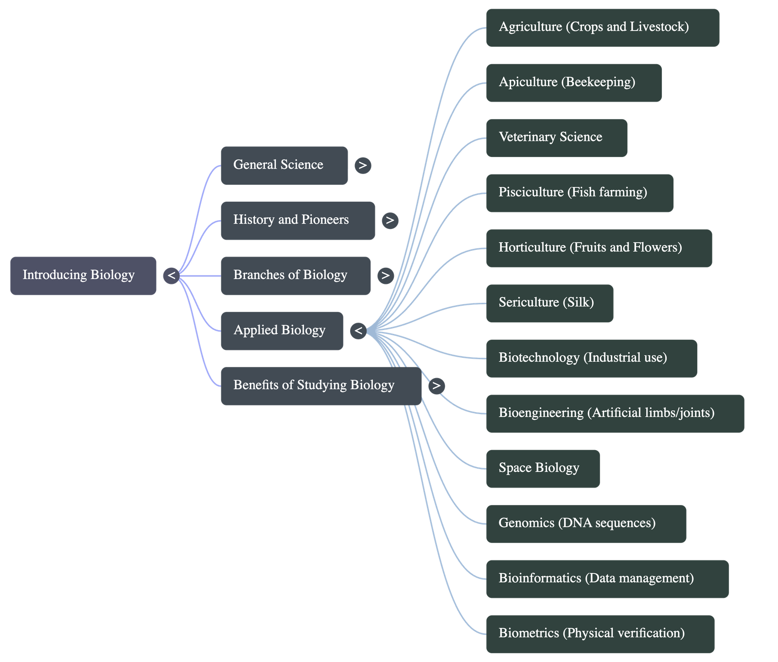 - Advanced Fields: Molecular Biology, Cloning, Nuclear Biology (radiation effects), Space Biology, Exobiology (life elsewhere in the universe), Genomics, Bioinformatics, and Biometrics.