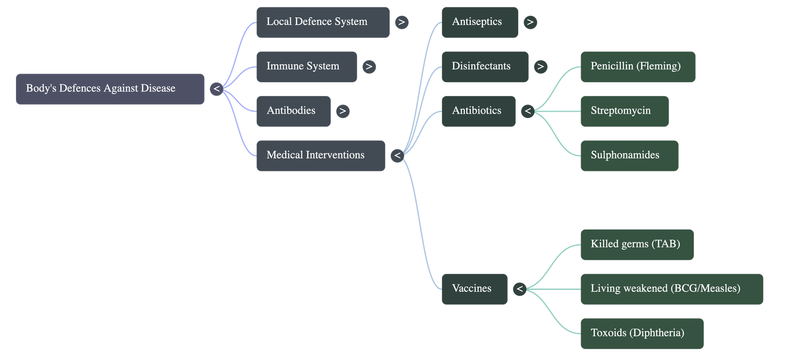 - Living weakened germs: e.g., Measles vaccine, BCG for tuberculosis (Bacillus Calmette-Guérin).