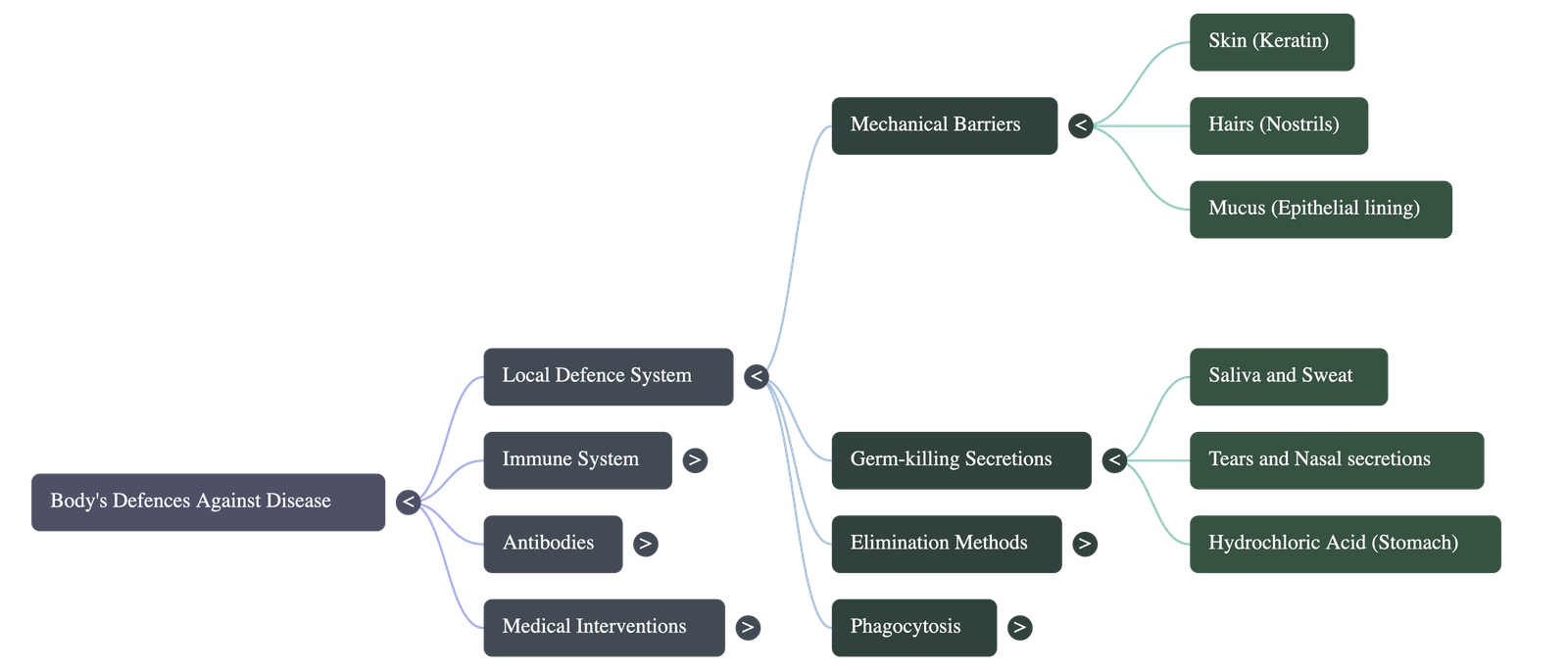 - Germ-Killing Secretions: Substances like saliva, sweat, and tears contain germ-killing elements. The stomach secretes strong Hydrochloric acid to kill ingested germs.