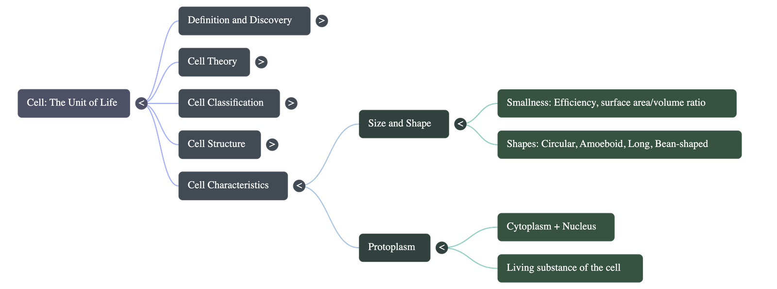 - Efficiency of Small Size: Cells remain small to maintain a high surface area-to-volume ratio (for greater diffusion of nutrients, gases, and wastes) and to allow rapid communication across different regions of the cell.