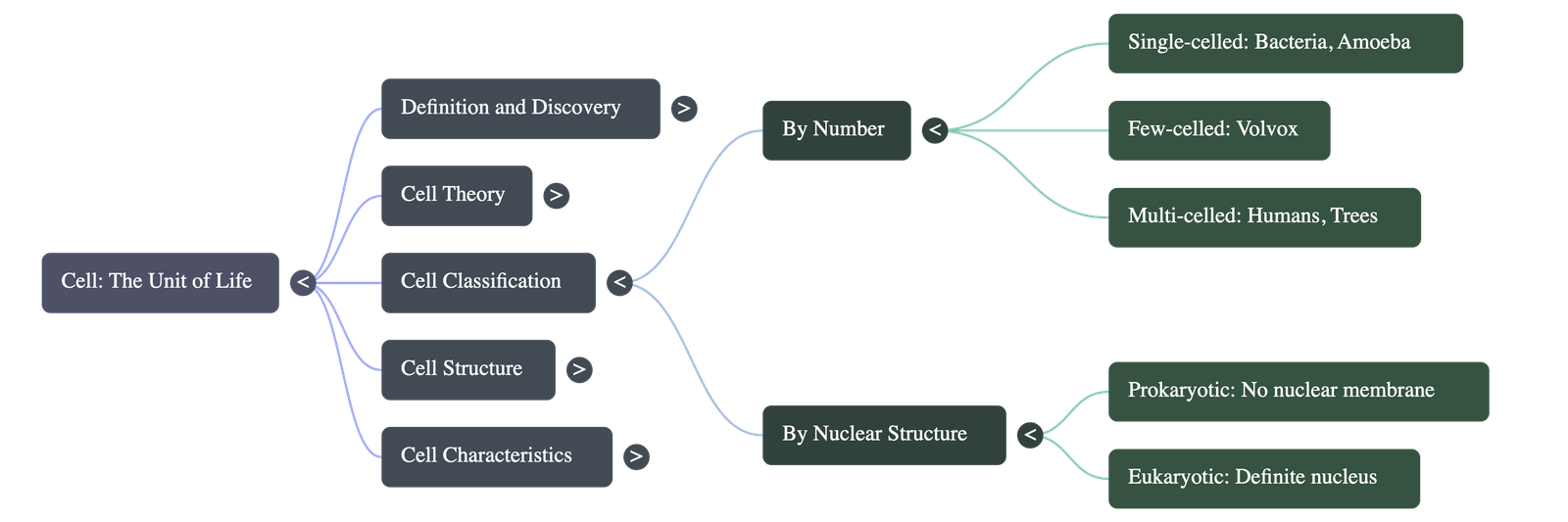 - Quantity: Organisms can be single-celled (e.g., Amoeba, Bacteria), few-celled (e.g., Spirogyra), or multi-celled (e.g., humans, trees).