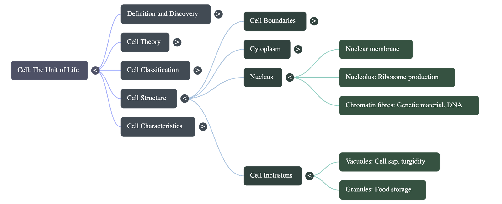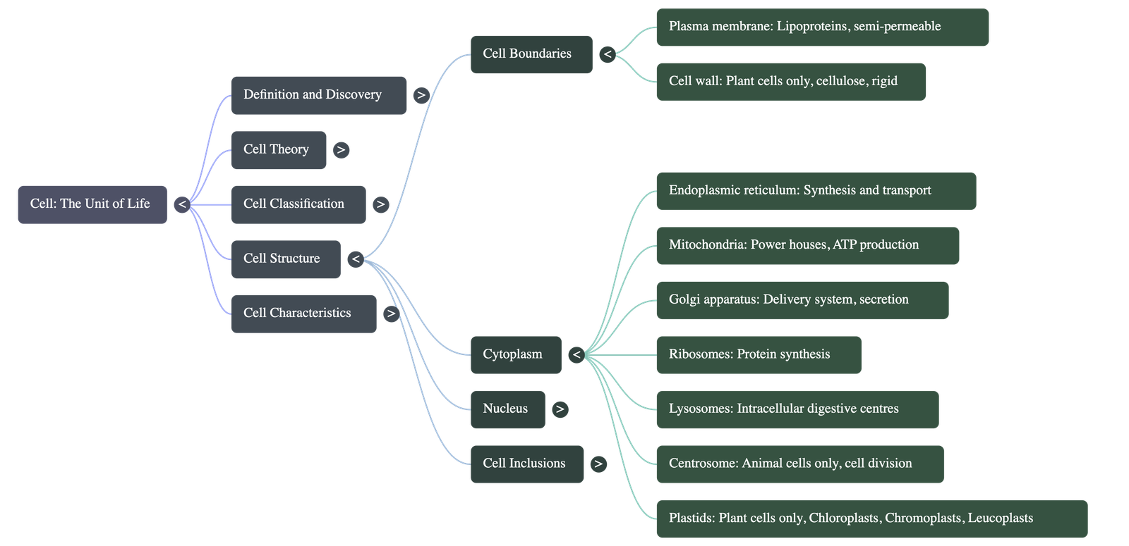- Nucleus: The most important and largest cell organelle. It regulates cell life processes and plays a key role in cell division and heredity.