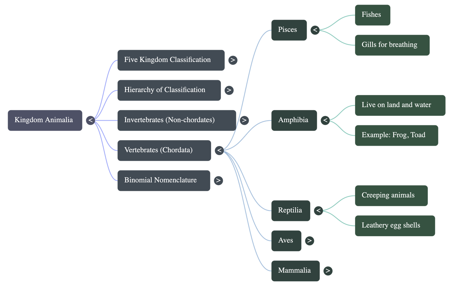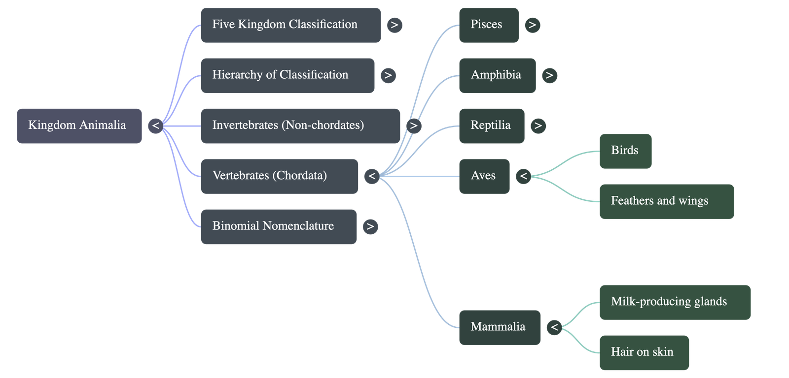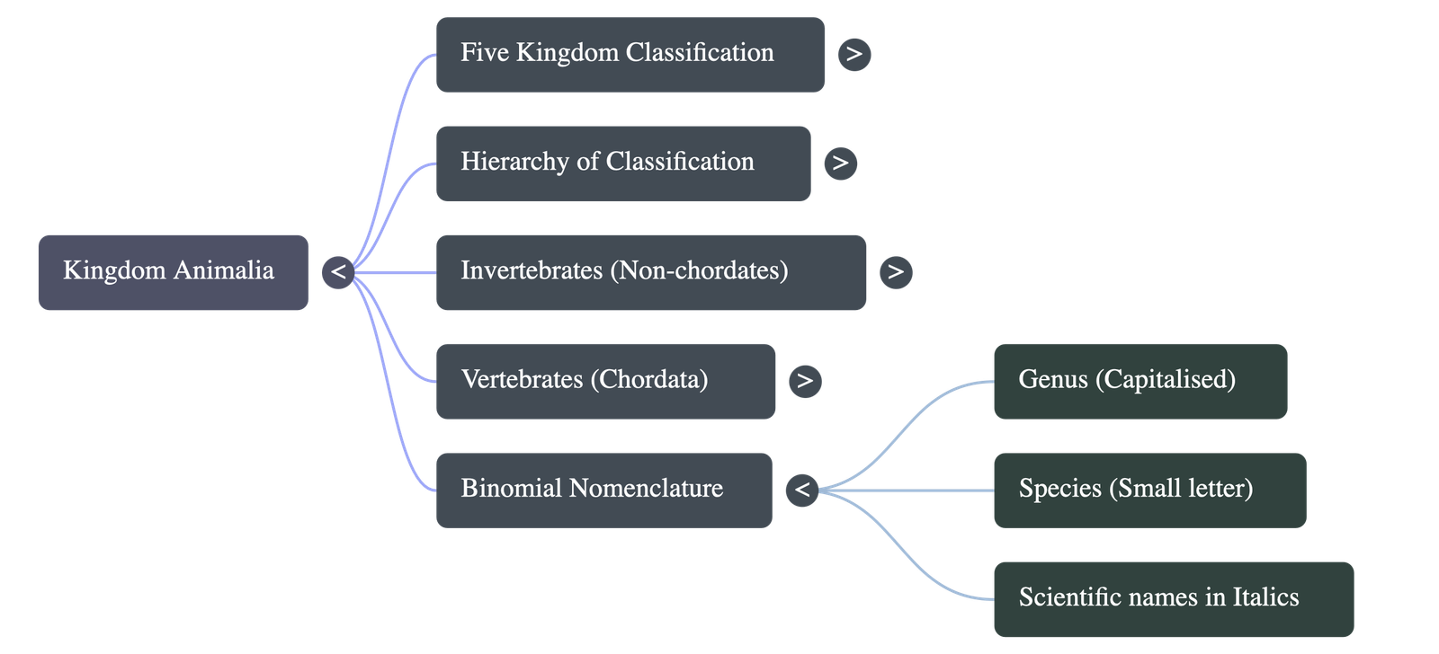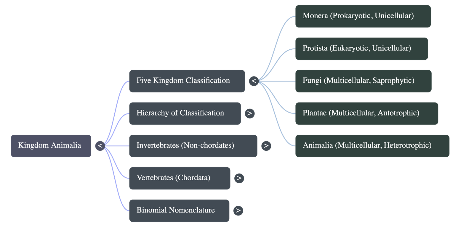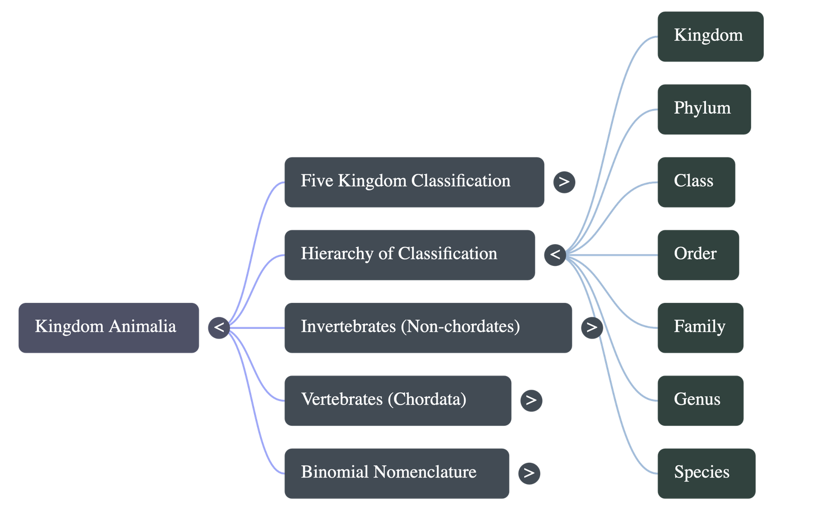 - Hierarchy of Categories: Organisms are classified in successive levels: Species → Genus → Family → Order → Class → Phylum → Kingdom (the highest and largest division).